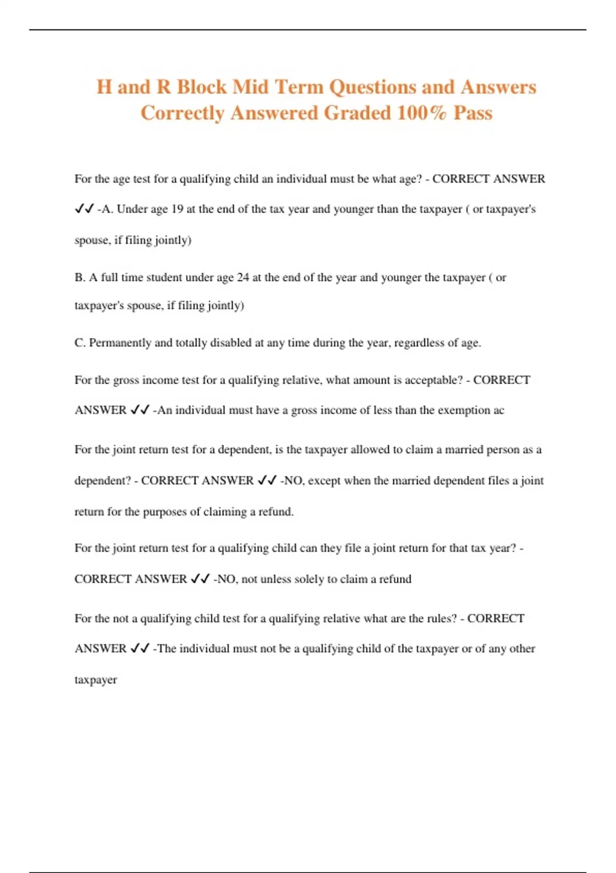 H and R Block Mid Term Questions and Answers Correctly Answered Graded 100% Pass