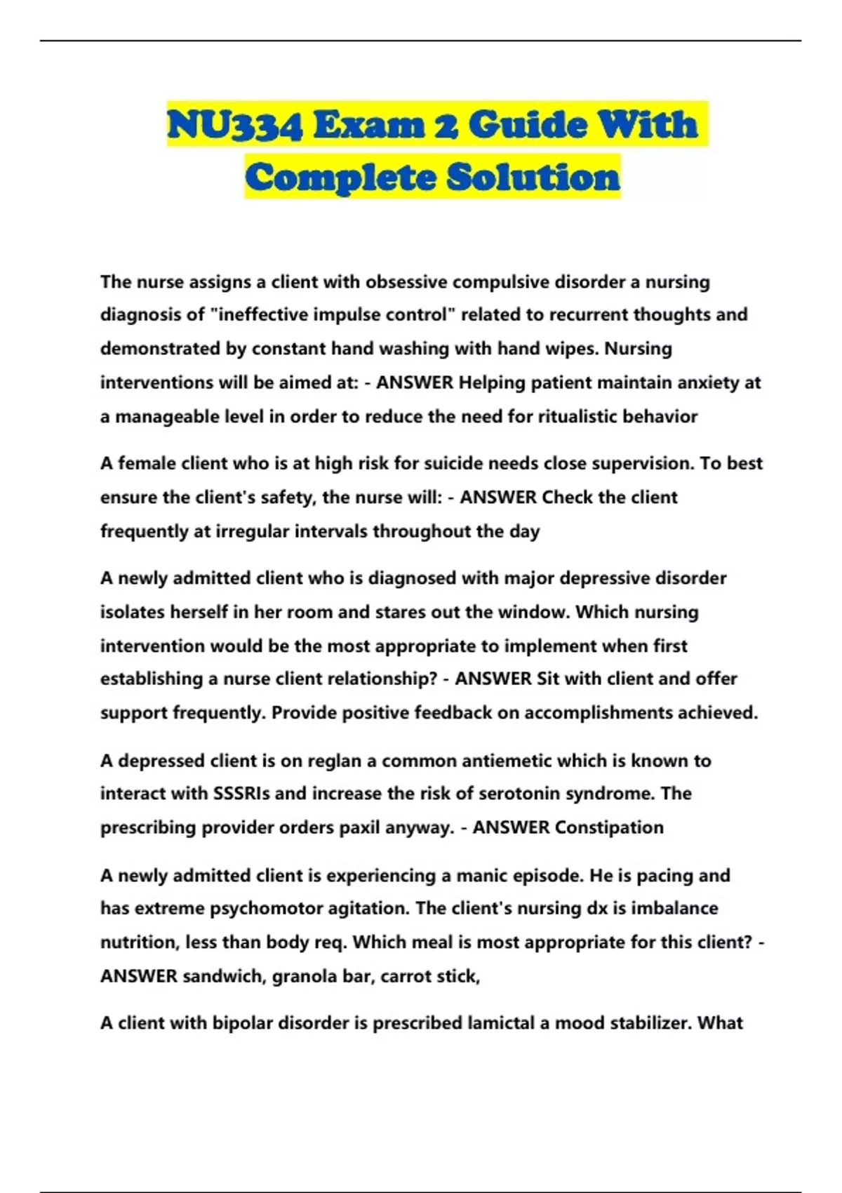 NU334 Exam 2 Guide With