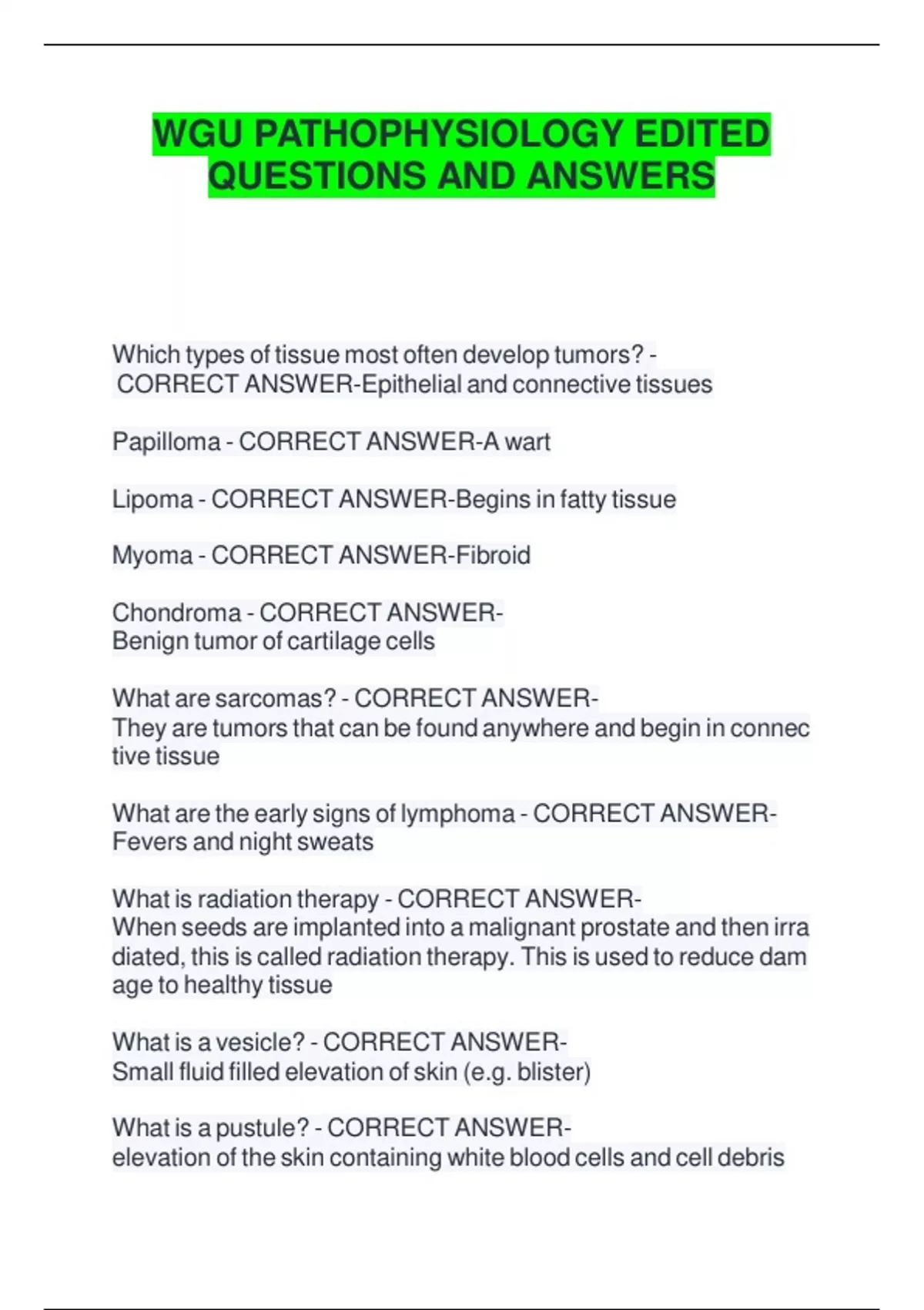 WGU PATHOPHYSIOLOGY EDITED QUESTIONS AND ANSWERS.