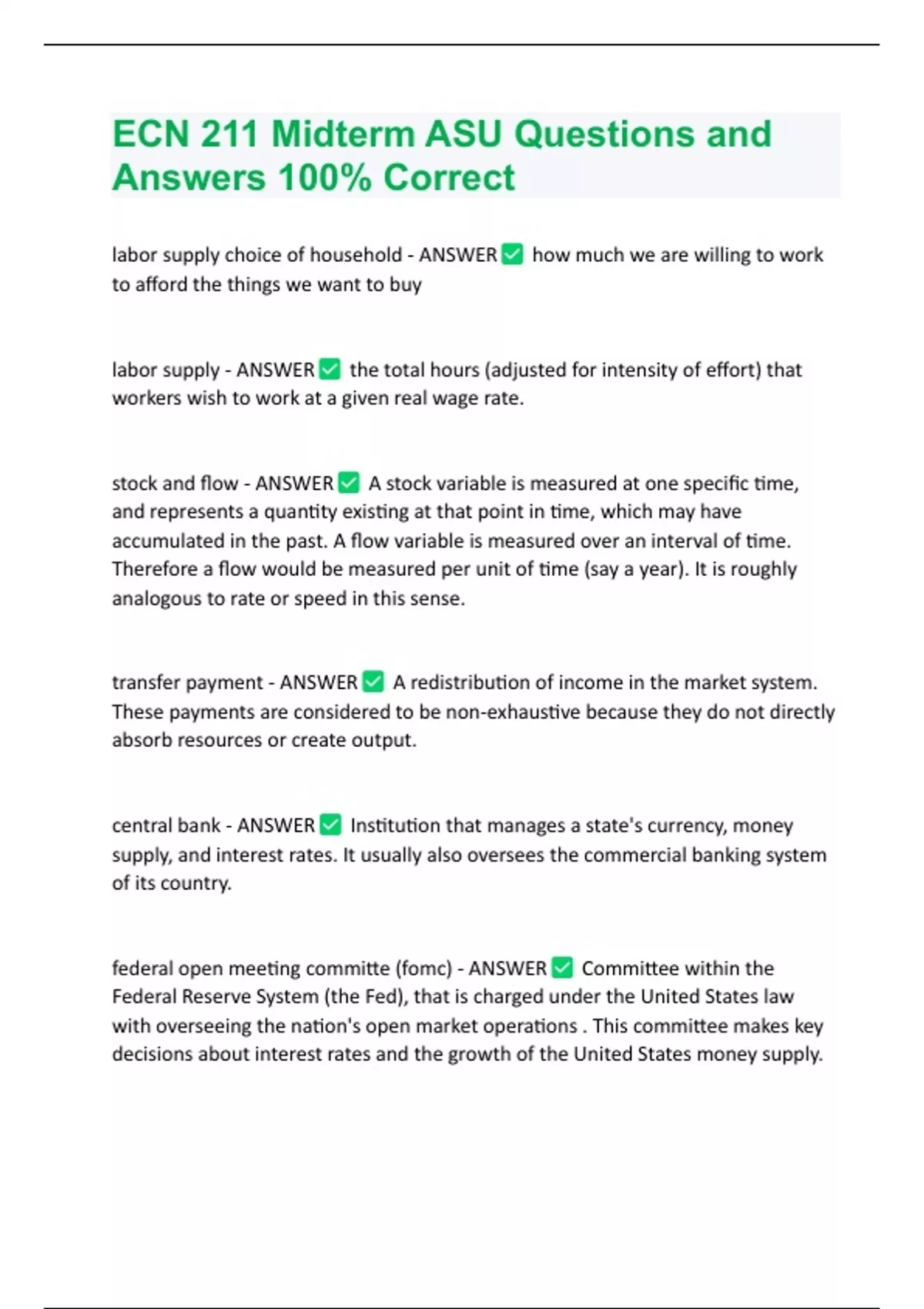 ECN 211 Midterm ASU Questions and