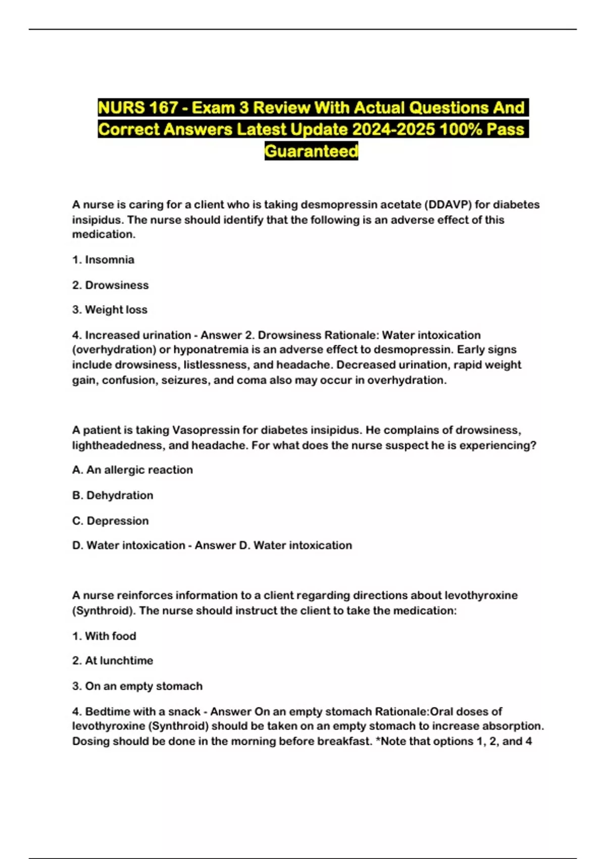 NURS 167 - Exam 3 Review With Actual Questions And Correct Answers Latest Update % Pass Guaranteed...