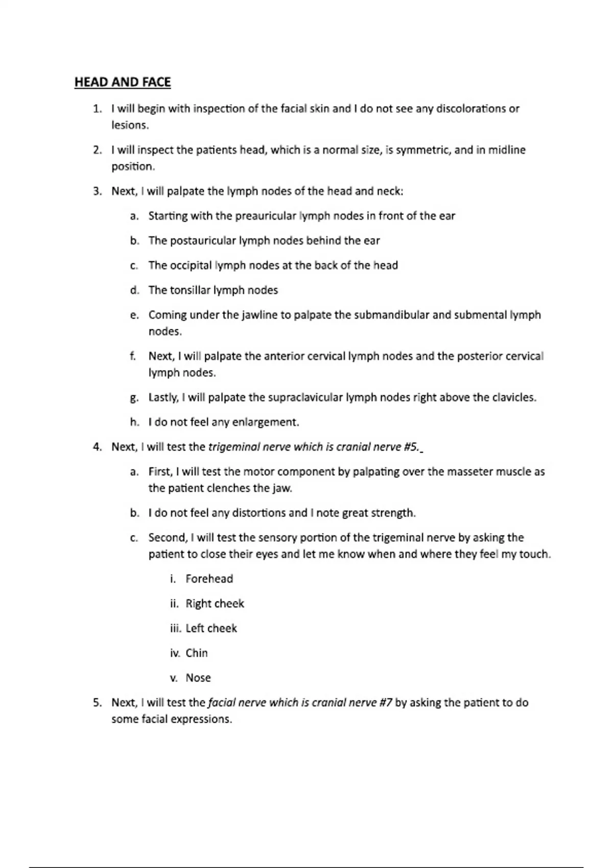 head and face physical exam video script detailed