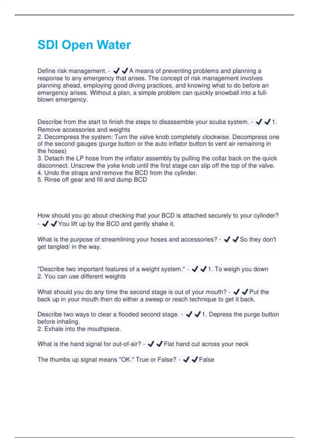 SDI Open Water Questions and Answers with complete solution