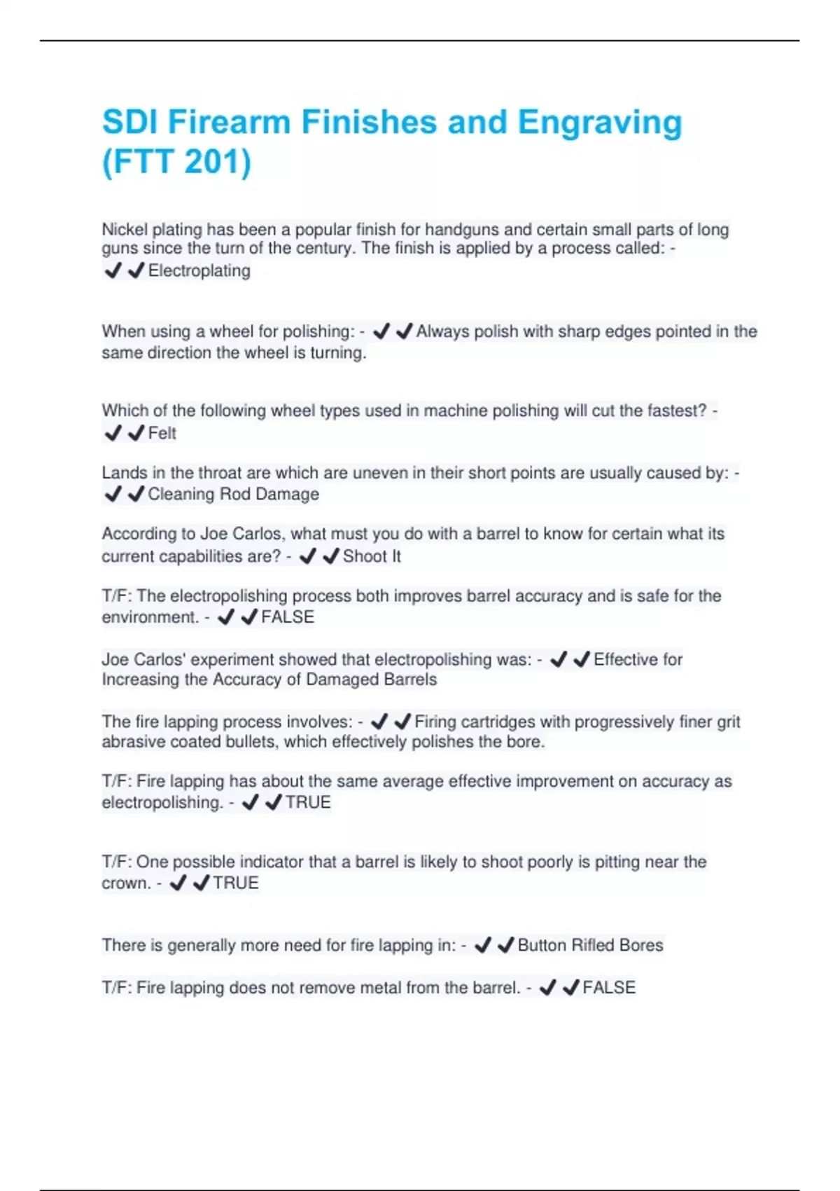 T/F: Fire lapping does not remove metal from the barrel. - ✔️✔️FALSE
