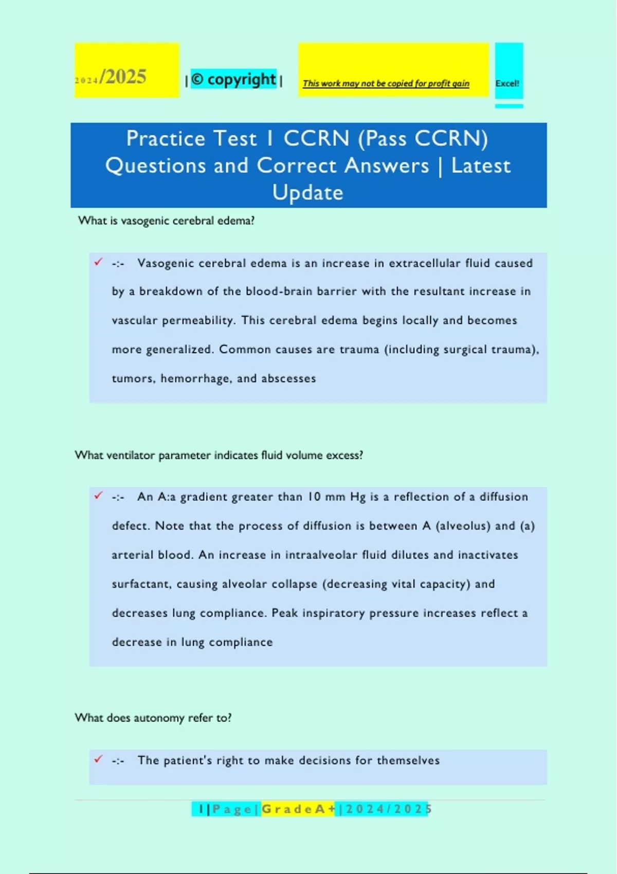Practice Test 1 CCRN (Pass CCRN)