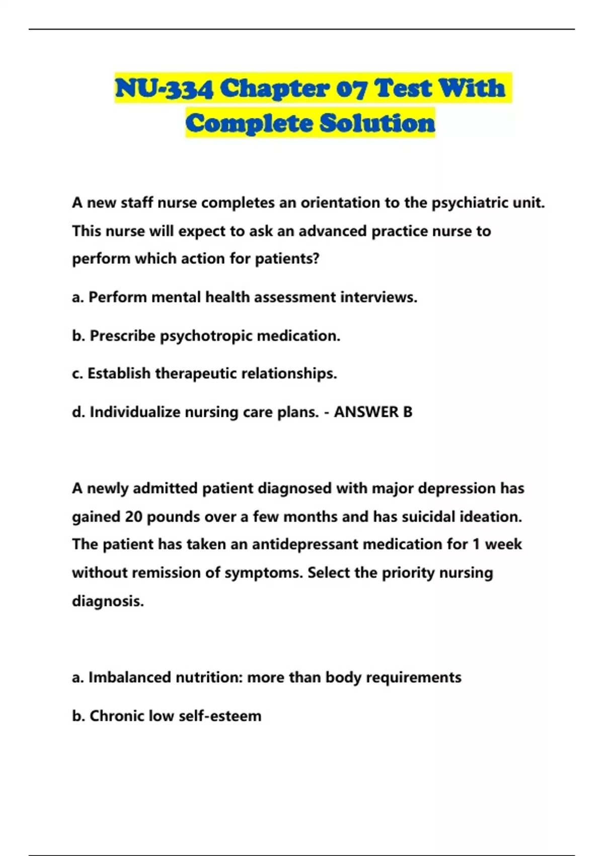 NU-334 Chapter 07 Test With Complete Solution