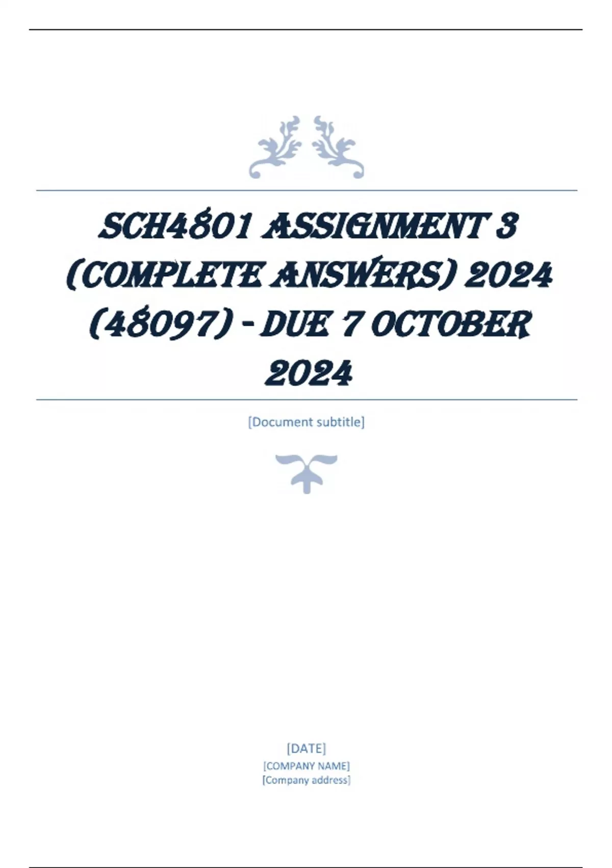 SCH4801 Assignment 3 (COMPLETE ANSWERS) 2024 (48097) - DUE 7 October 2024