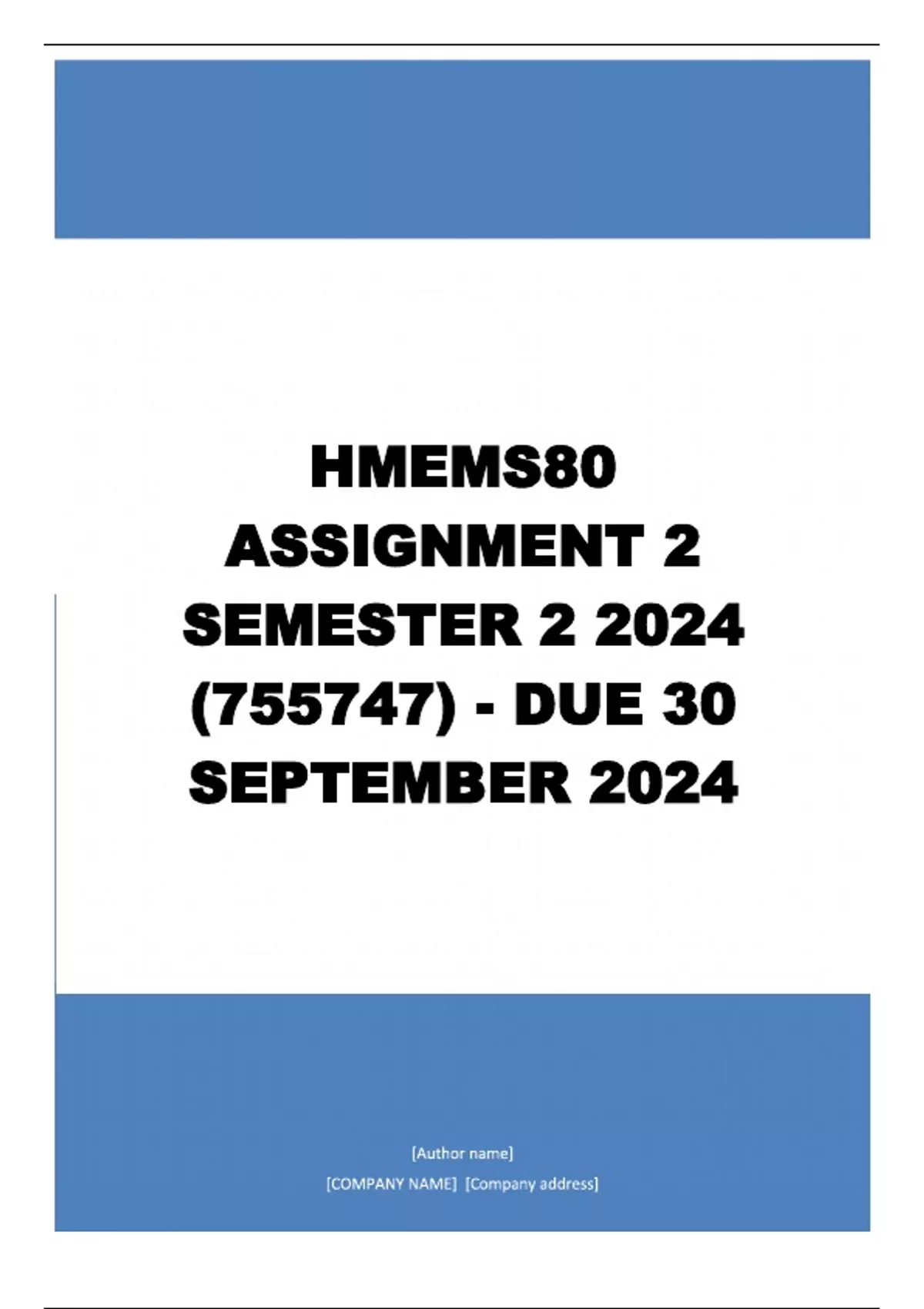 HMEMS80 Assignment 2 Semester 2 2024 (755747) - DUE 30 September 2024.