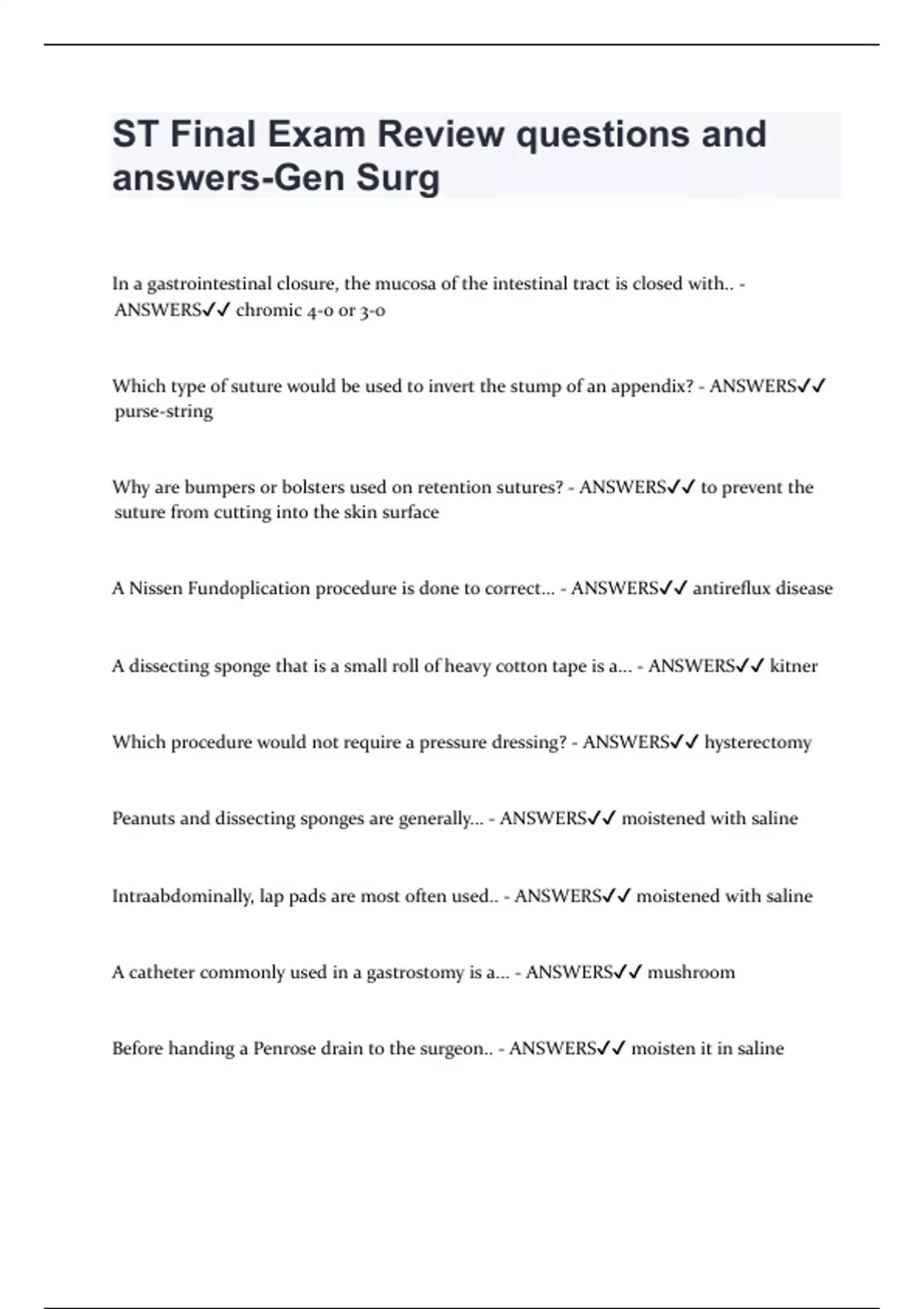 ST Final Exam Review questions and answers-Gen Surg