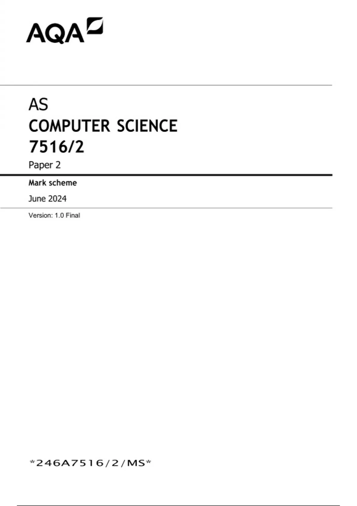 AQA AS COMPUTER SCIENCE Paper 2 JUNE 2024 MARK SCHEME