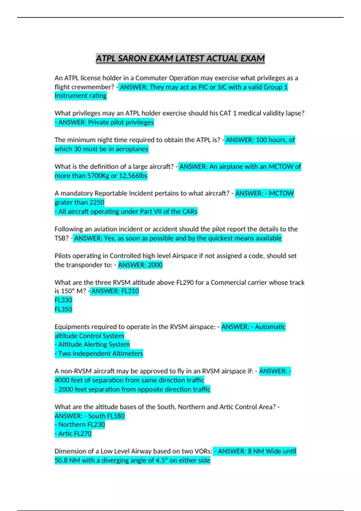 ATPL SARON EXAM LATEST ACTUAL EXAM
