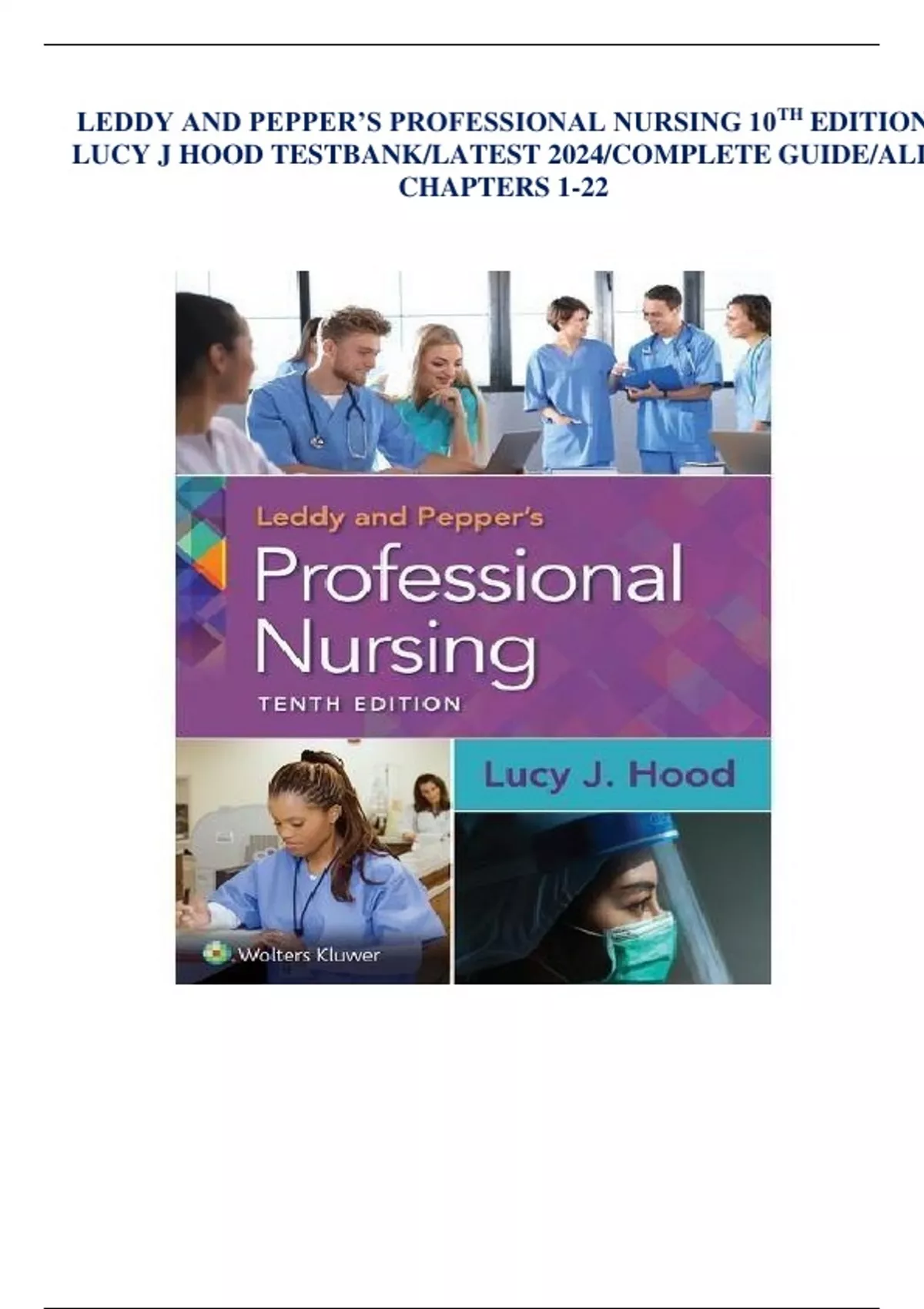 LEDDY AND PEPPER’S PROFESSIONAL NURSING 10TH EDITION LUCY J HOOD TESTBANK
