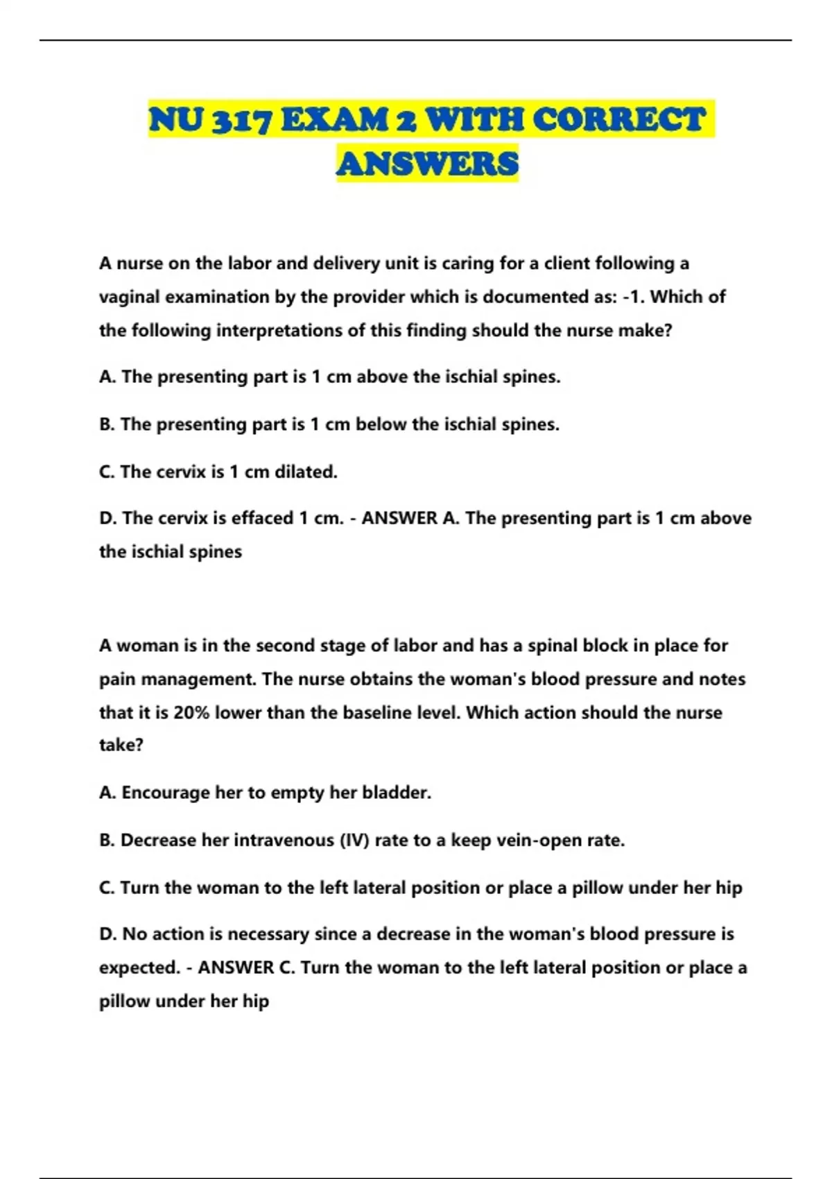 expected. - ANSWER C. Turn the woman to the left lateral position or place a
