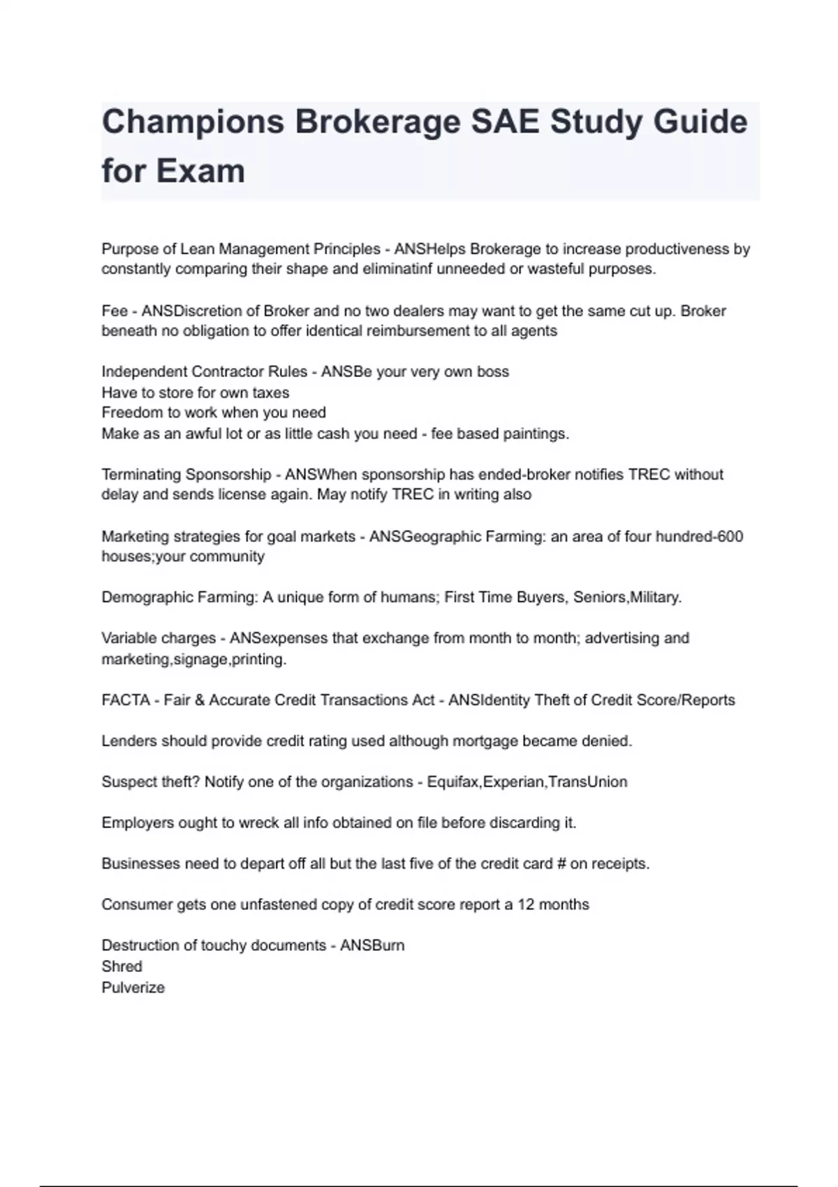 FACTA - Fair & Accurate Credit Transactions Act - ANSIdentity Theft of Credit Score/Reports