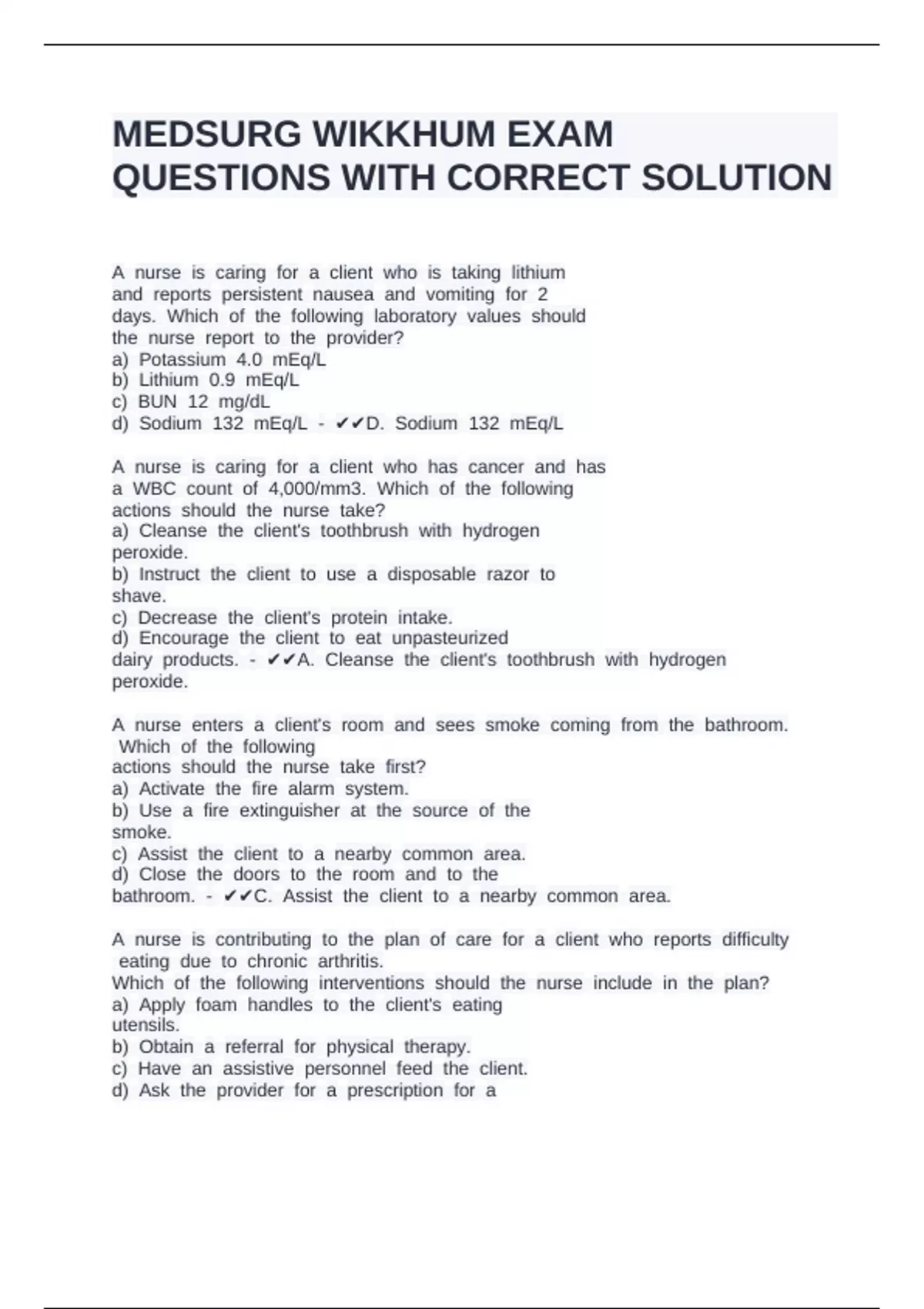 MEDSURG WIKKHUM EXAM QUESTIONS WITH CORRECT SOLUTION