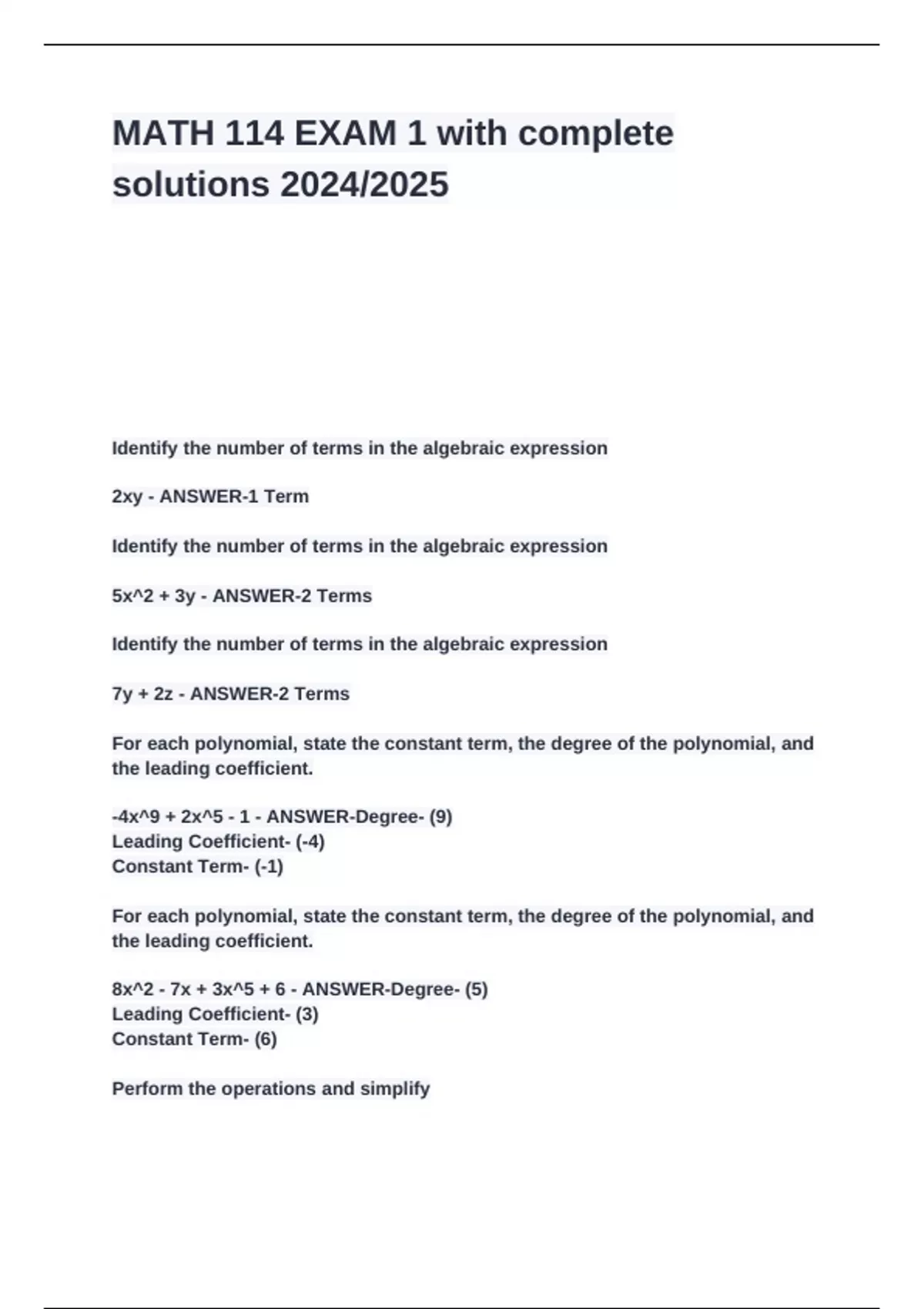 7y + 2z - ANSWER-2 Terms