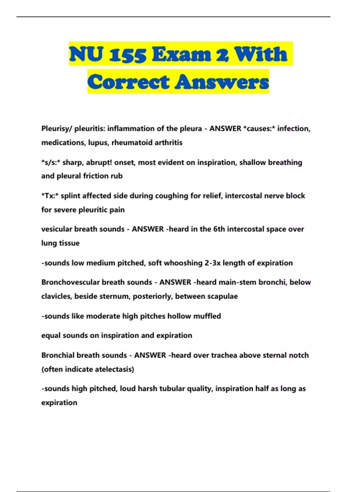 Bronchial breath sounds - ANSWER -heard over trachea above sternal notch