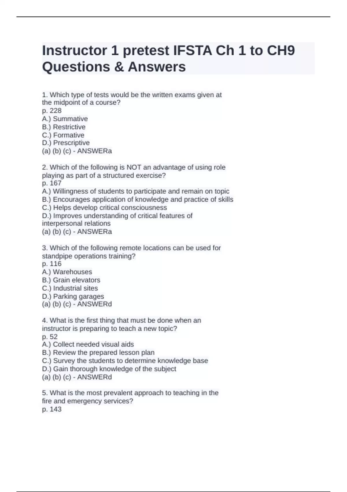 A.) Level I instructors are normally provided lesson plans