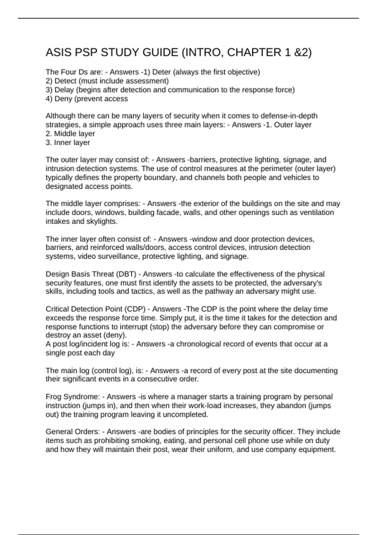 ASIS PSP STUDY GUIDE (INTRO, CHAPTER 1 &2)