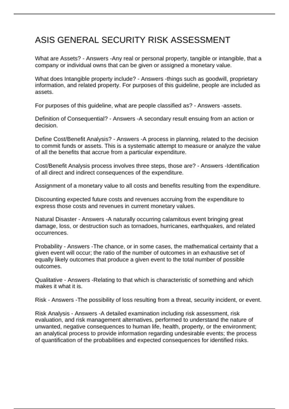 ASIS GENERAL SECURITY RISK ASSESSMENT