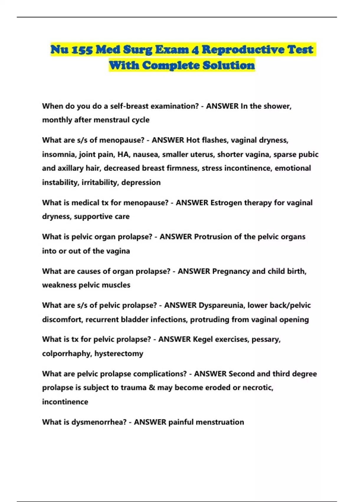 Nu 155 Med Surg Exam 4 Reproductive Test