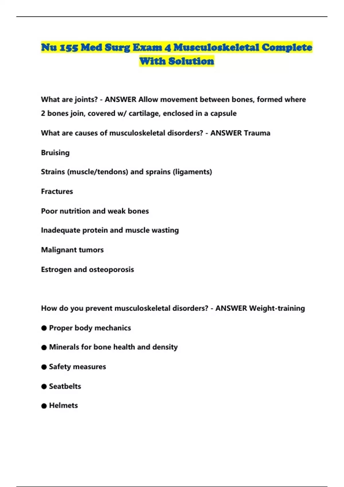 Nu 155 Med Surg Exam 4 Musculoskeletal Complete With Solution...