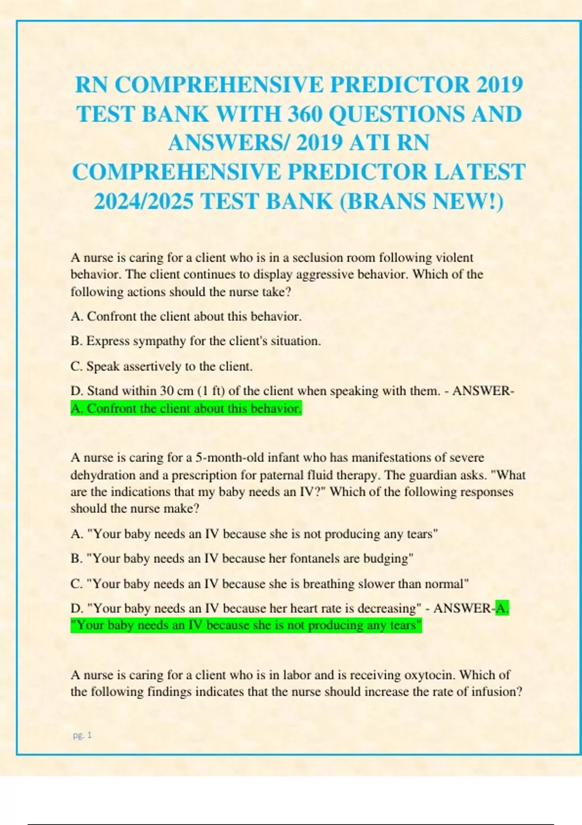 RN COMPREHENSIVE PREDICTOR 2019 TEST BANK WITH 360 QUESTIONS AND ANSWERS/ 2019 ATI RN COMPREHENSIVE PREDICTOR LATEST 2024/2025 TEST BANK (BRANS NEW!)