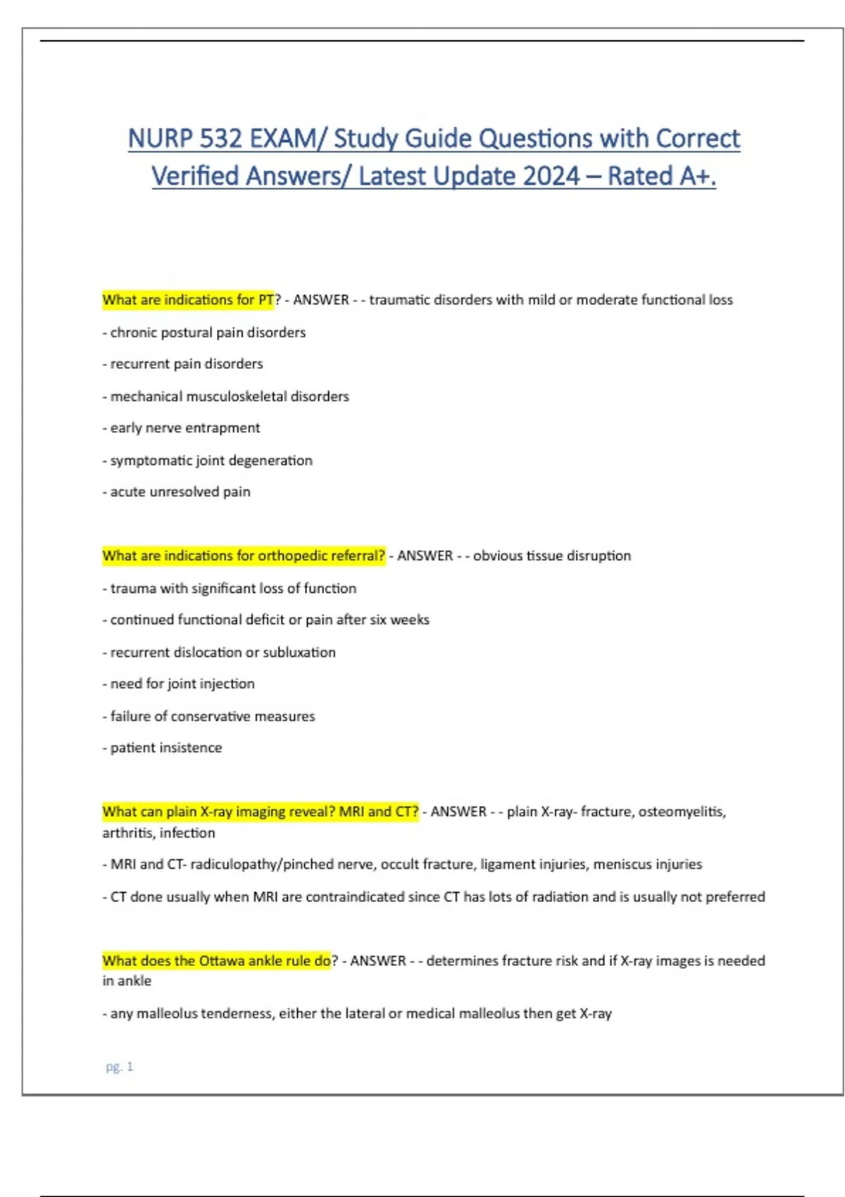 NURP 532 EXAM/ Study Guide Questions with Correct Verified Answers/ Latest Update 2024 – Rated A+.