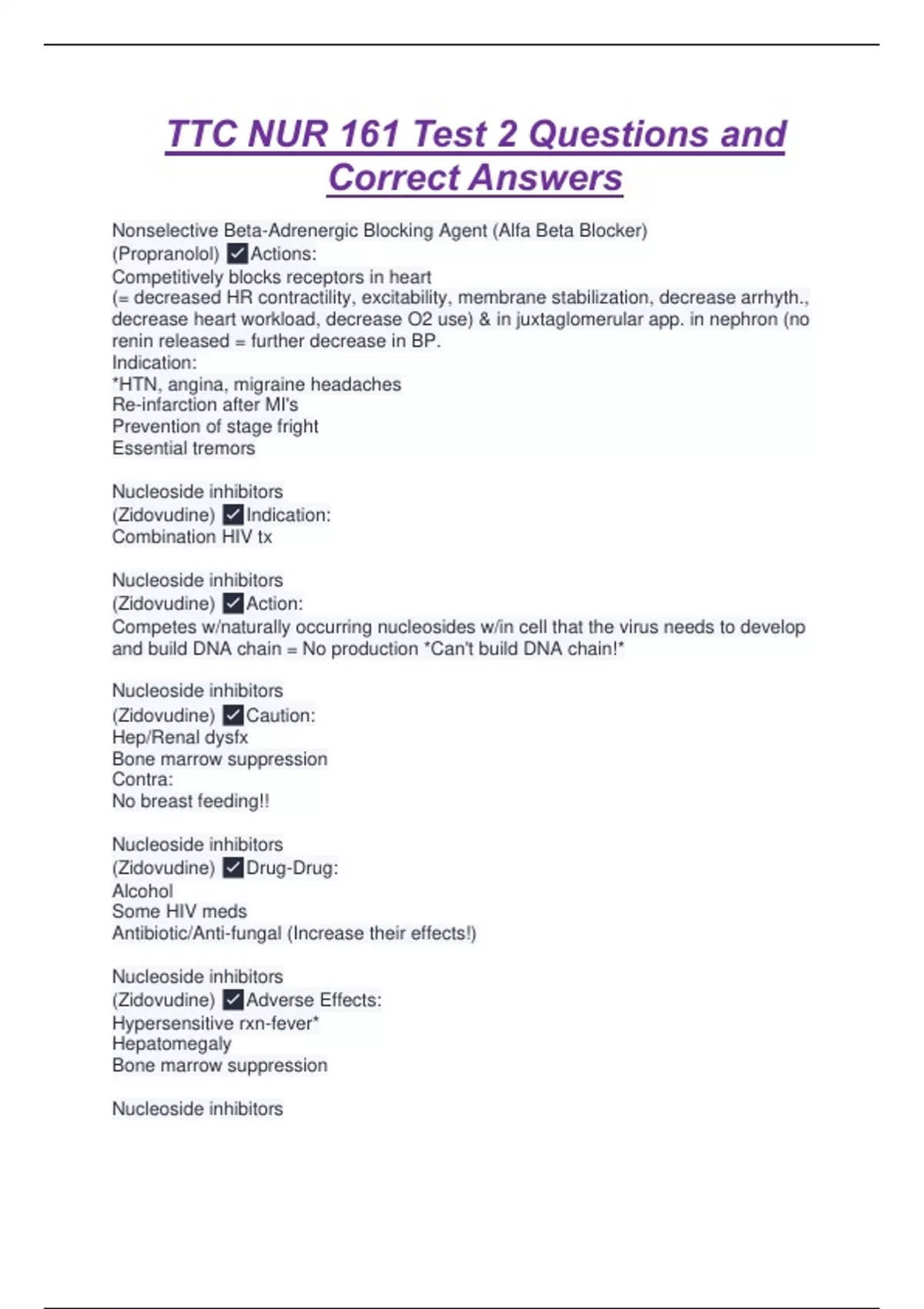 ,(Zidovudine) ✅Nursing C's: