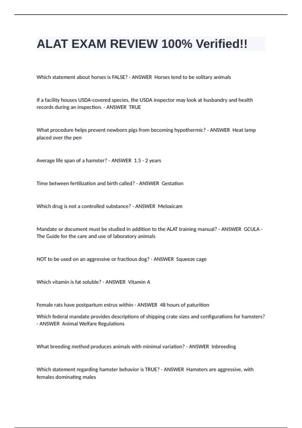 Which statement regarding hamster behavior is TRUE? - ANSWER Hamsters are aggressive, with