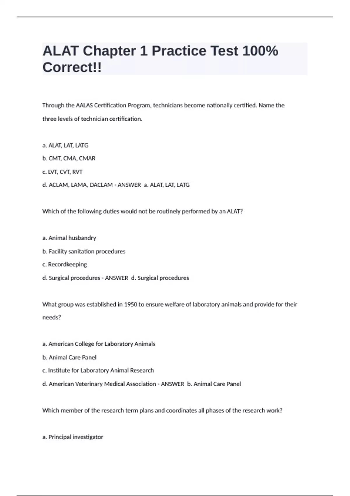 d. ACLAM, LAMA, DACLAM - ANSWER a. ALAT, LAT, LATG