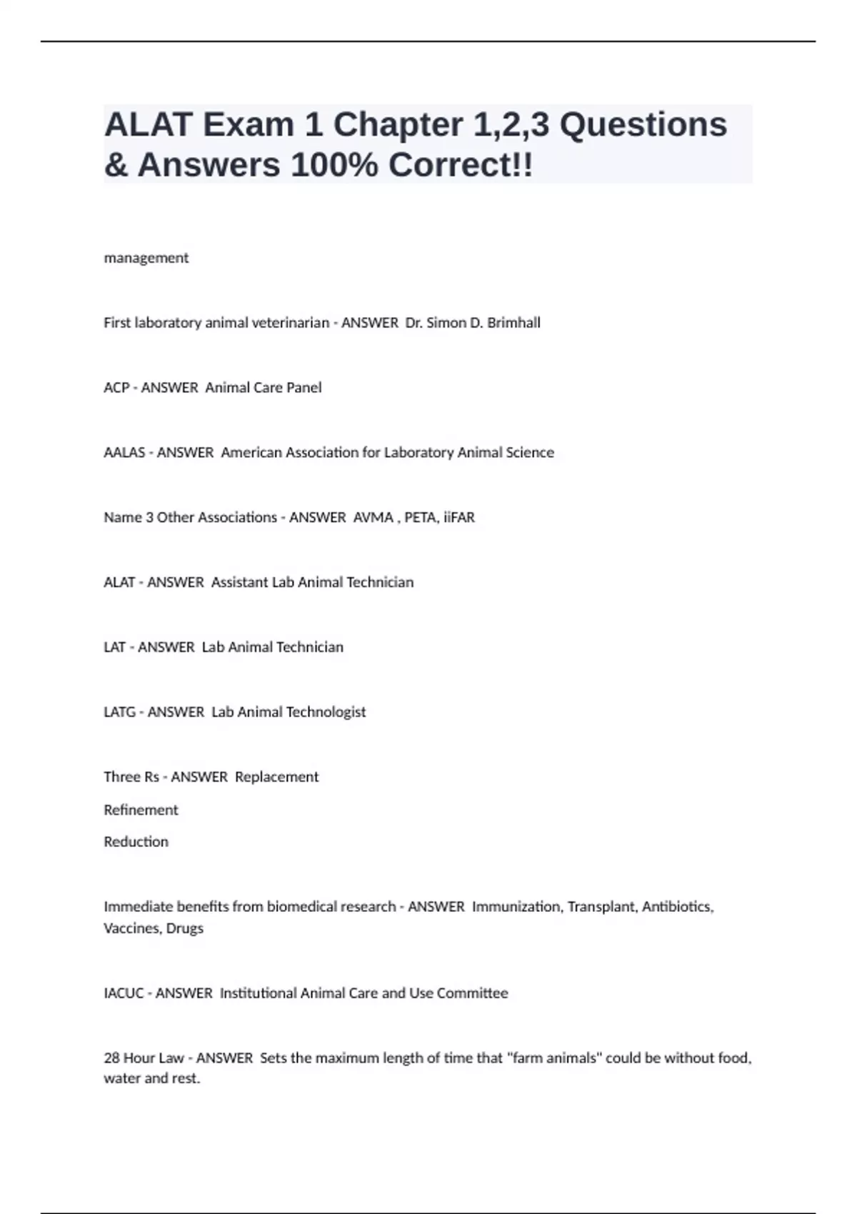 ALAT - ANSWER Assistant Lab Animal Technician