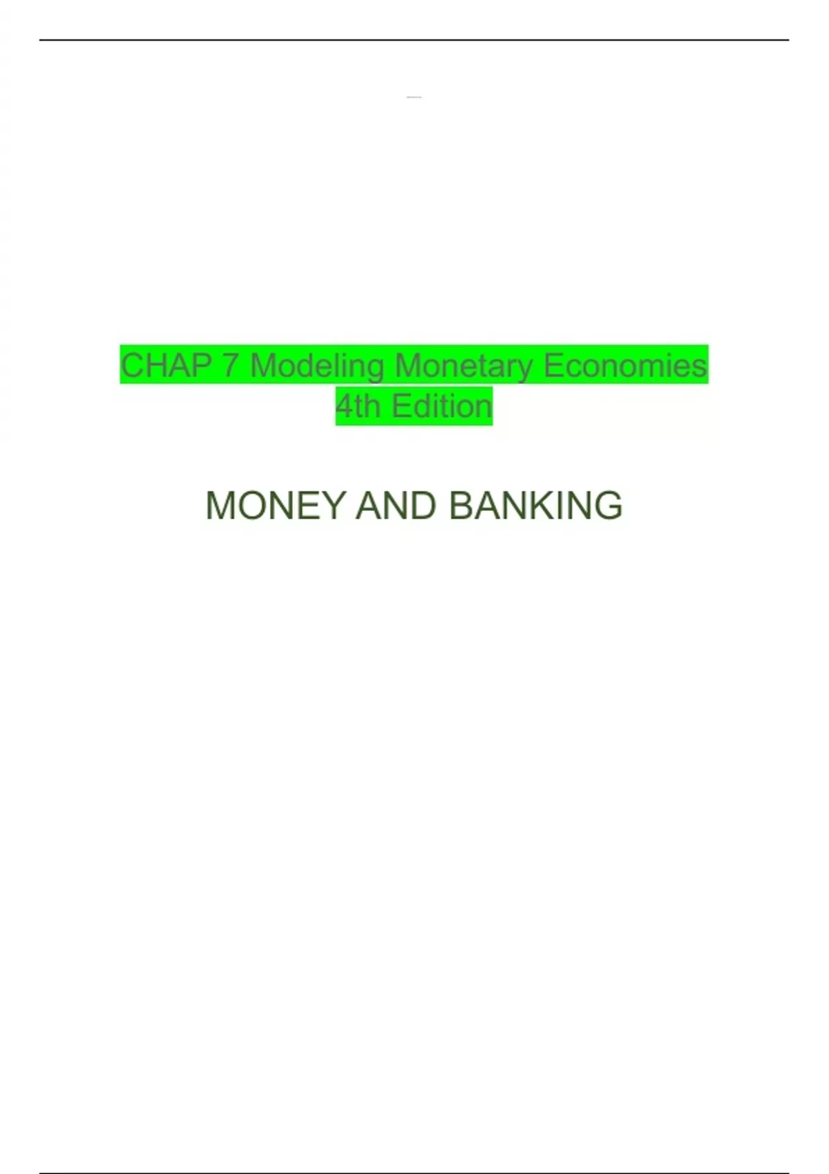 Summary CHAP 7 Modeling Monetary Economies 4th Edition MONEY AND BANKING