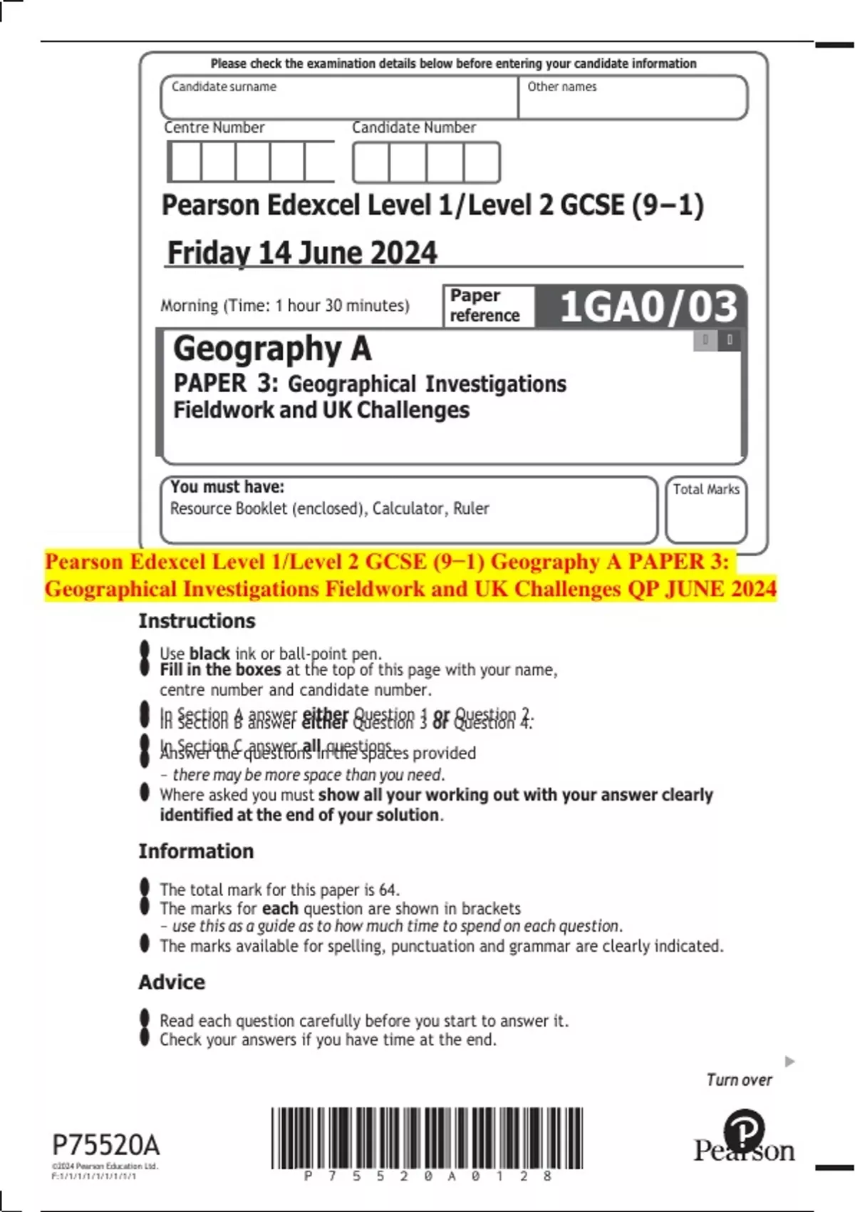 Pearson Edexcel Level 1/Level 2 GCSE (9−1) Geography A PAPER 3: