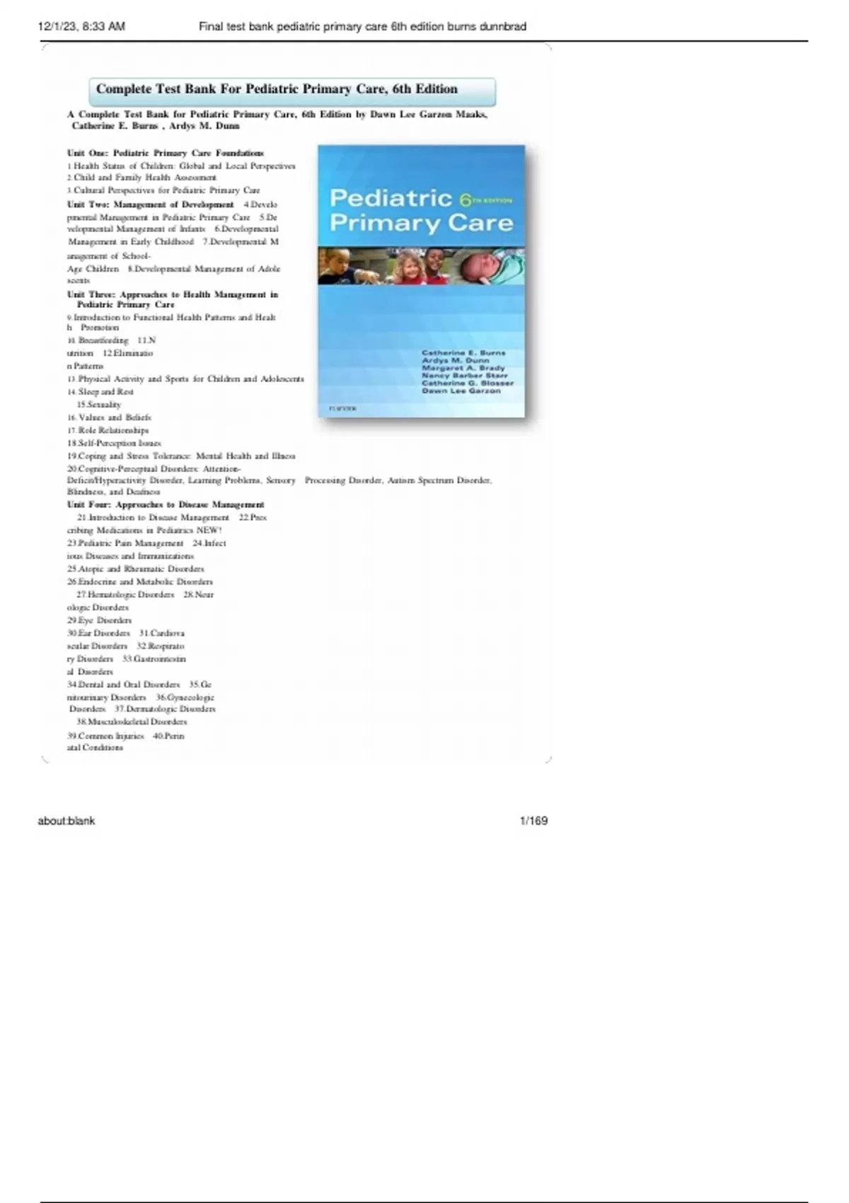 kr kr Final test bank pediatric primary care 6th edition burns dunnbrad