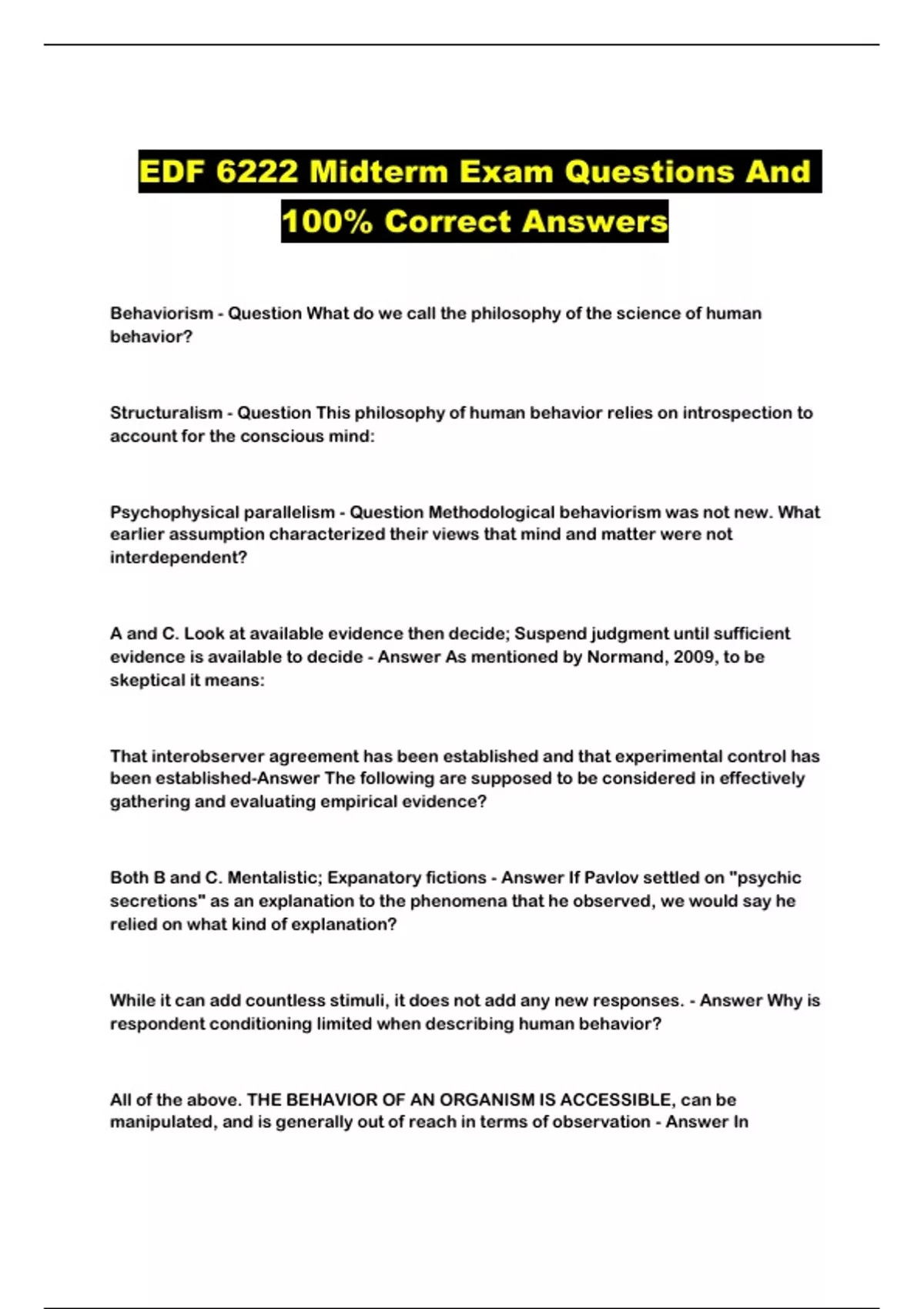 EDF 6222 Midterm Exam Questions And