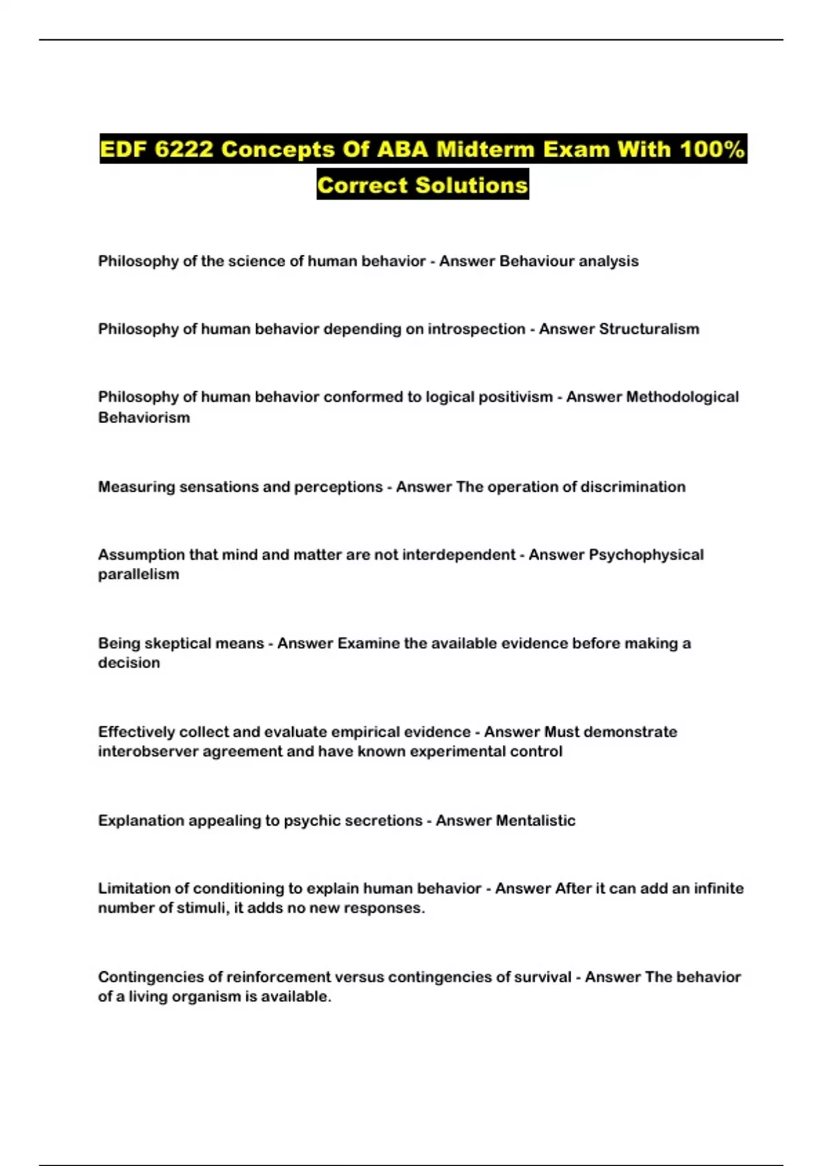 EDF 6222 Concepts Of ABA Midterm Exam With 100% Correct Solutions...