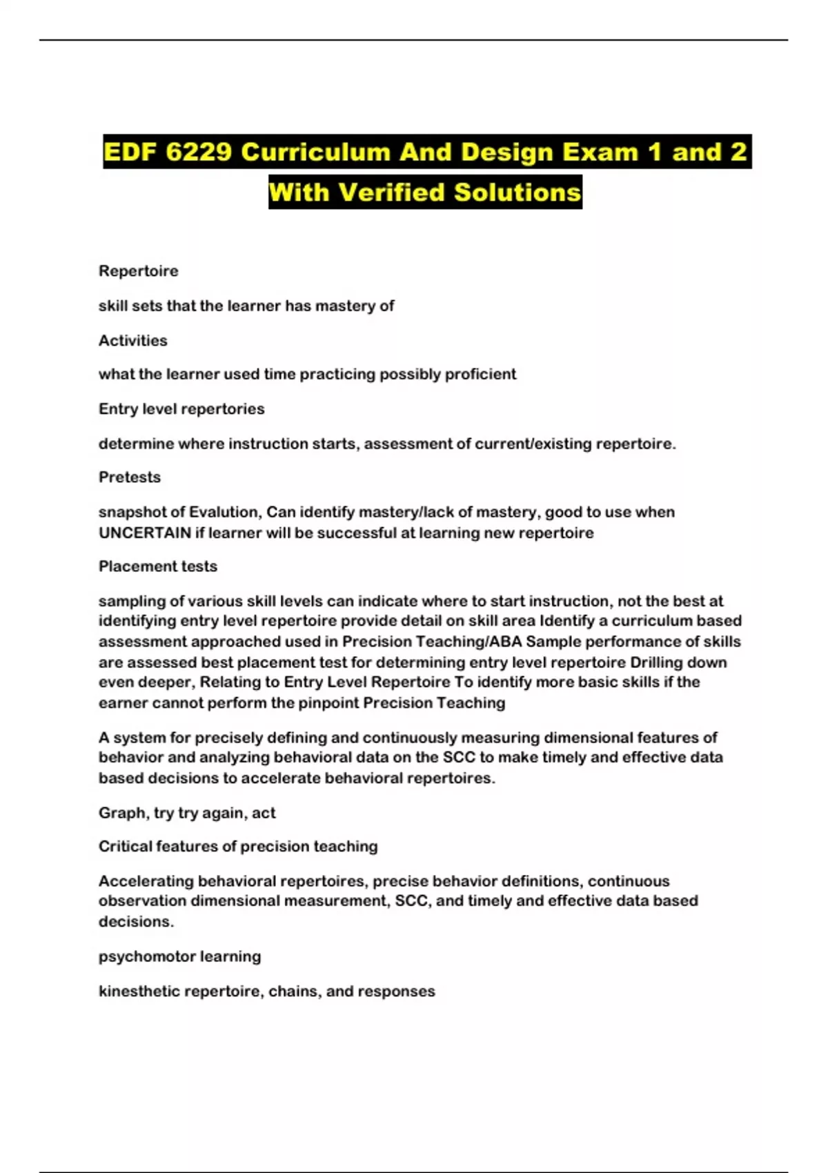 EDF 6229 Curriculum And Design Exam 1 and 2 With Verified Solutions...