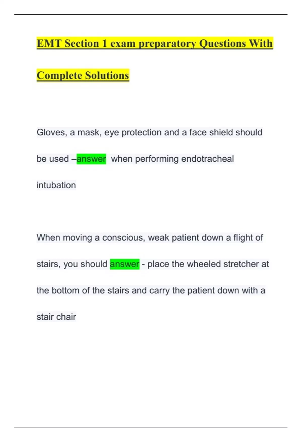 EMT Section 1 exam preparatory Questions With Complete Solutions.pdf