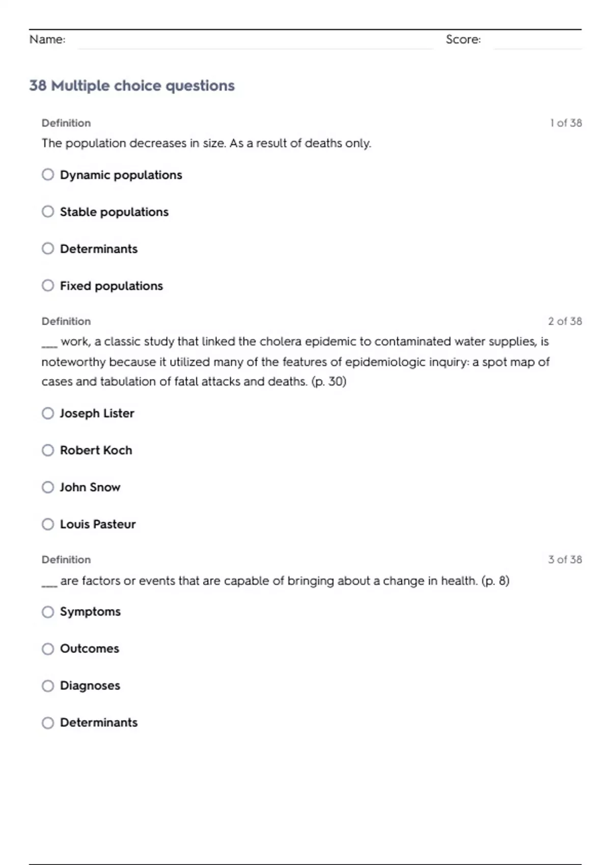Name: Score: