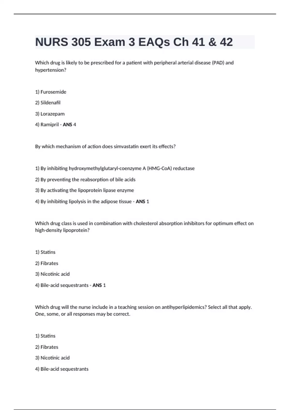 4) Lovastatin - ANS 4