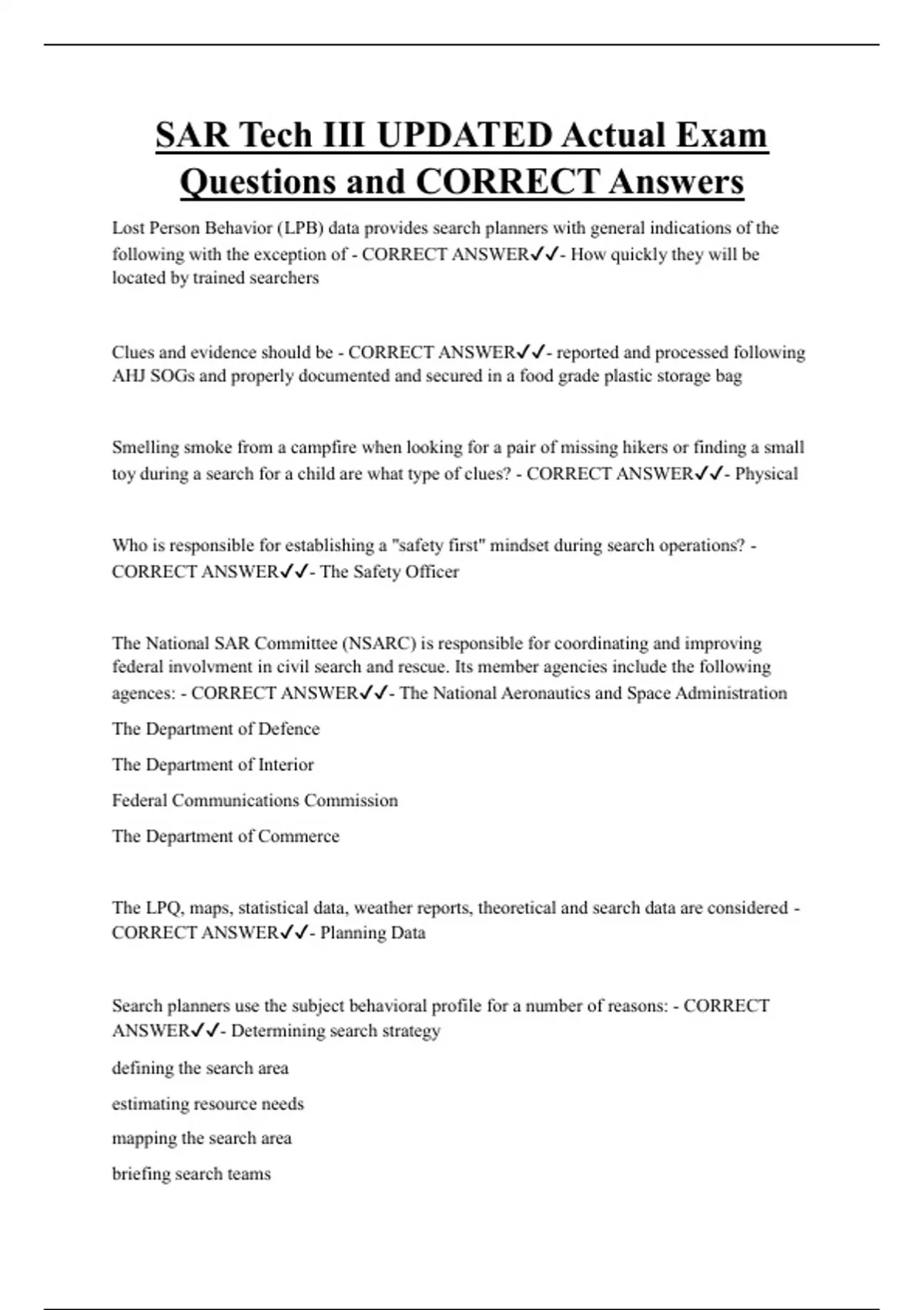 Questions and CORRECT Answers