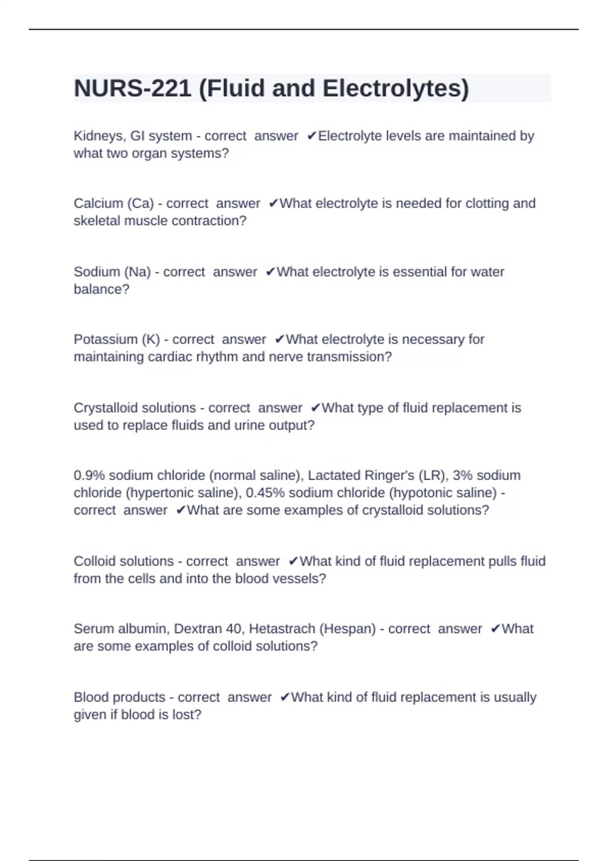 Crystalloid solutions - correct answer ✔What type of fluid replacement is