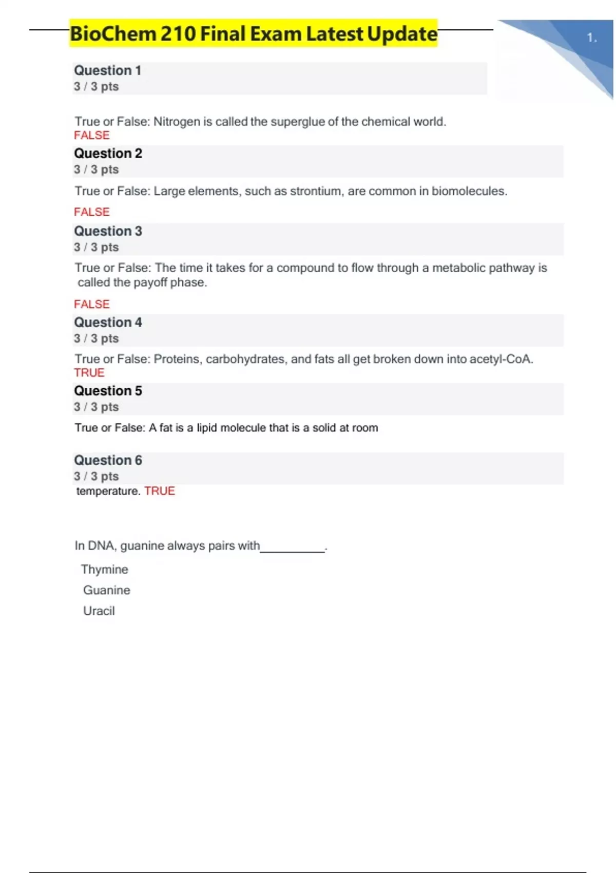 CHEM 210 Biochemistry Final Exam (2024 / 2025) Portage Learning Questions and Verified Answers, 100% original ultimate guide graded A+