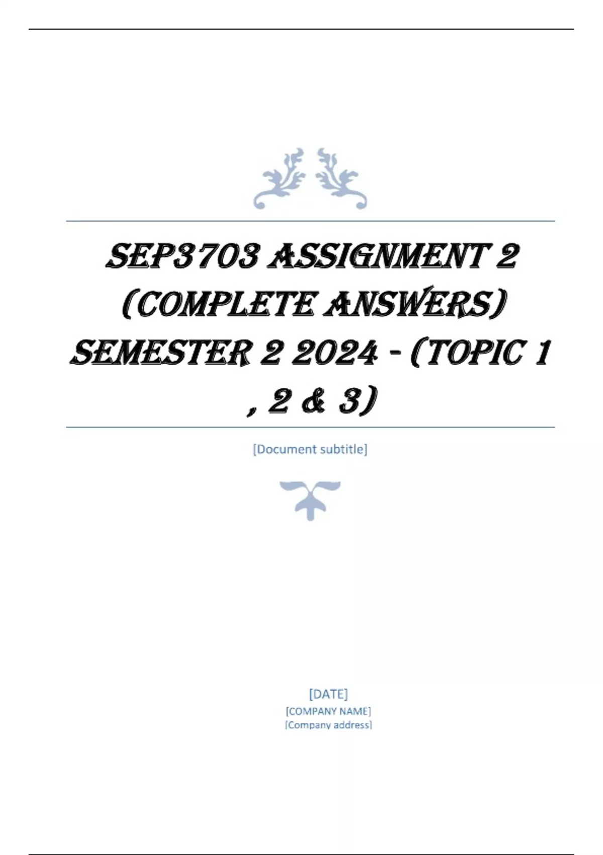 SEP3703 Assignment 2 (COMPLETE ANSWERS) Semester 2 2024 - (TOPIC 1 , 2 & 3)
