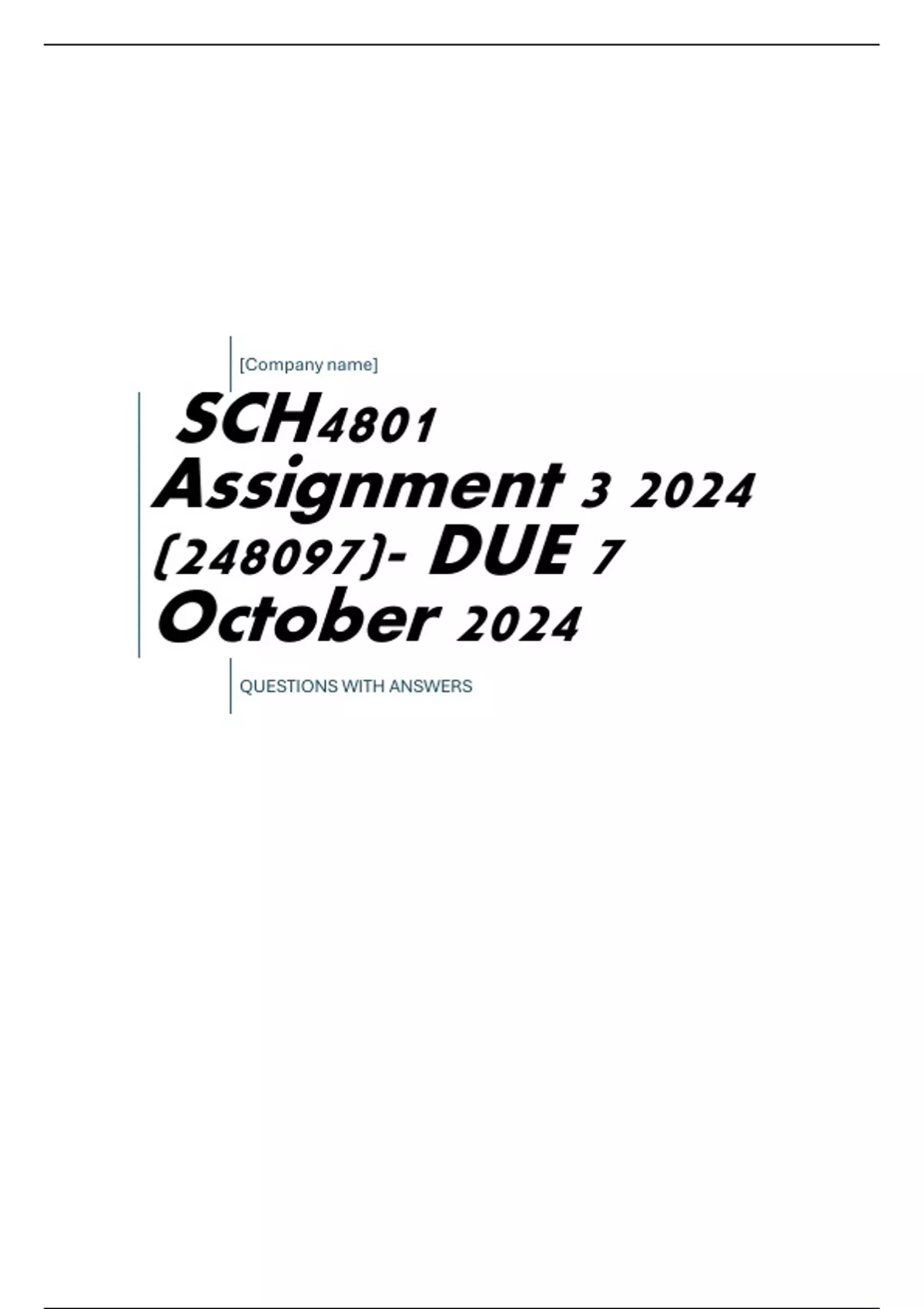 SCH4801 Assignment 3 2024 (248097)- DUE 7 October 2024