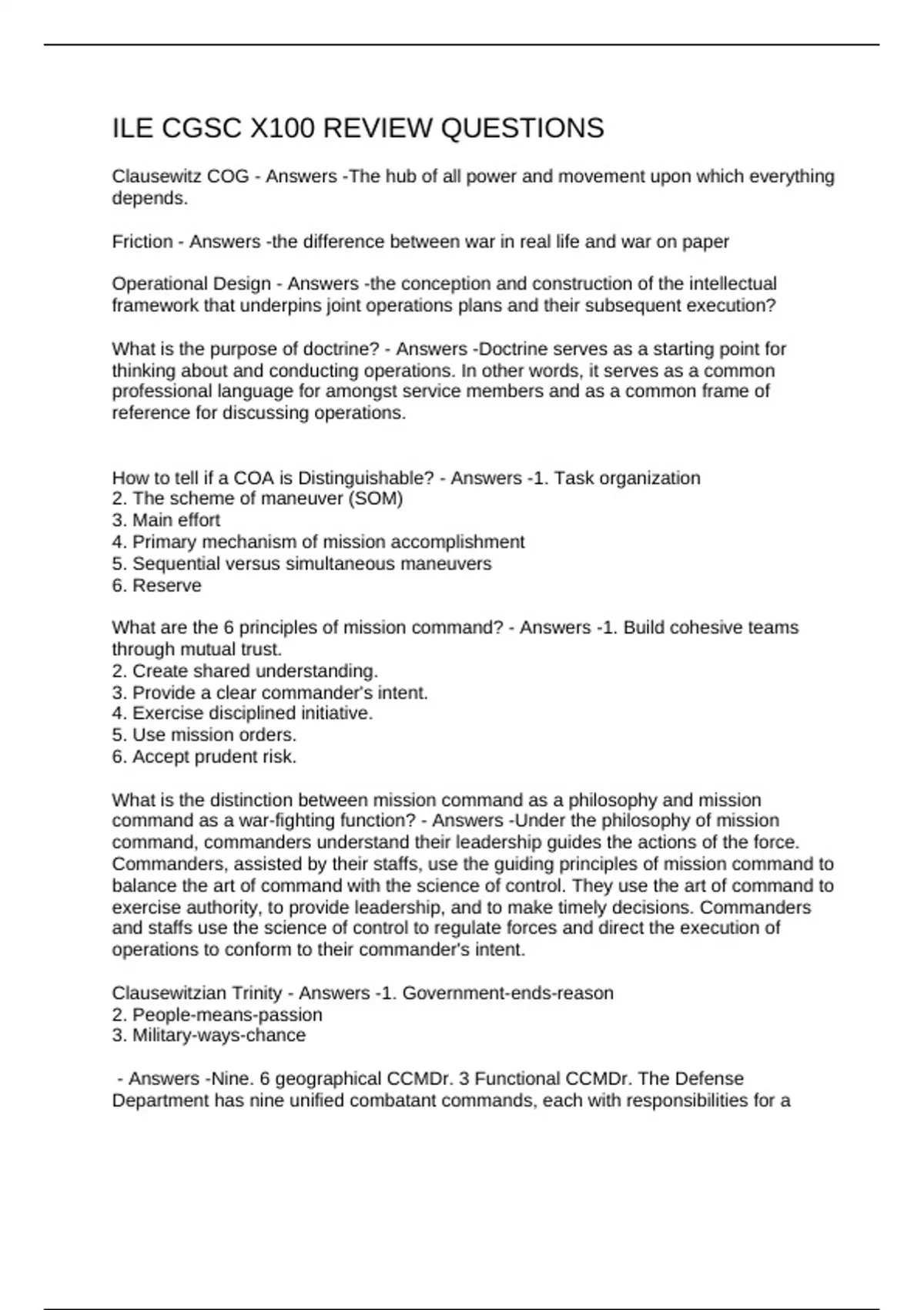 ILE CGSC X100 REVIEW QUESTIONS