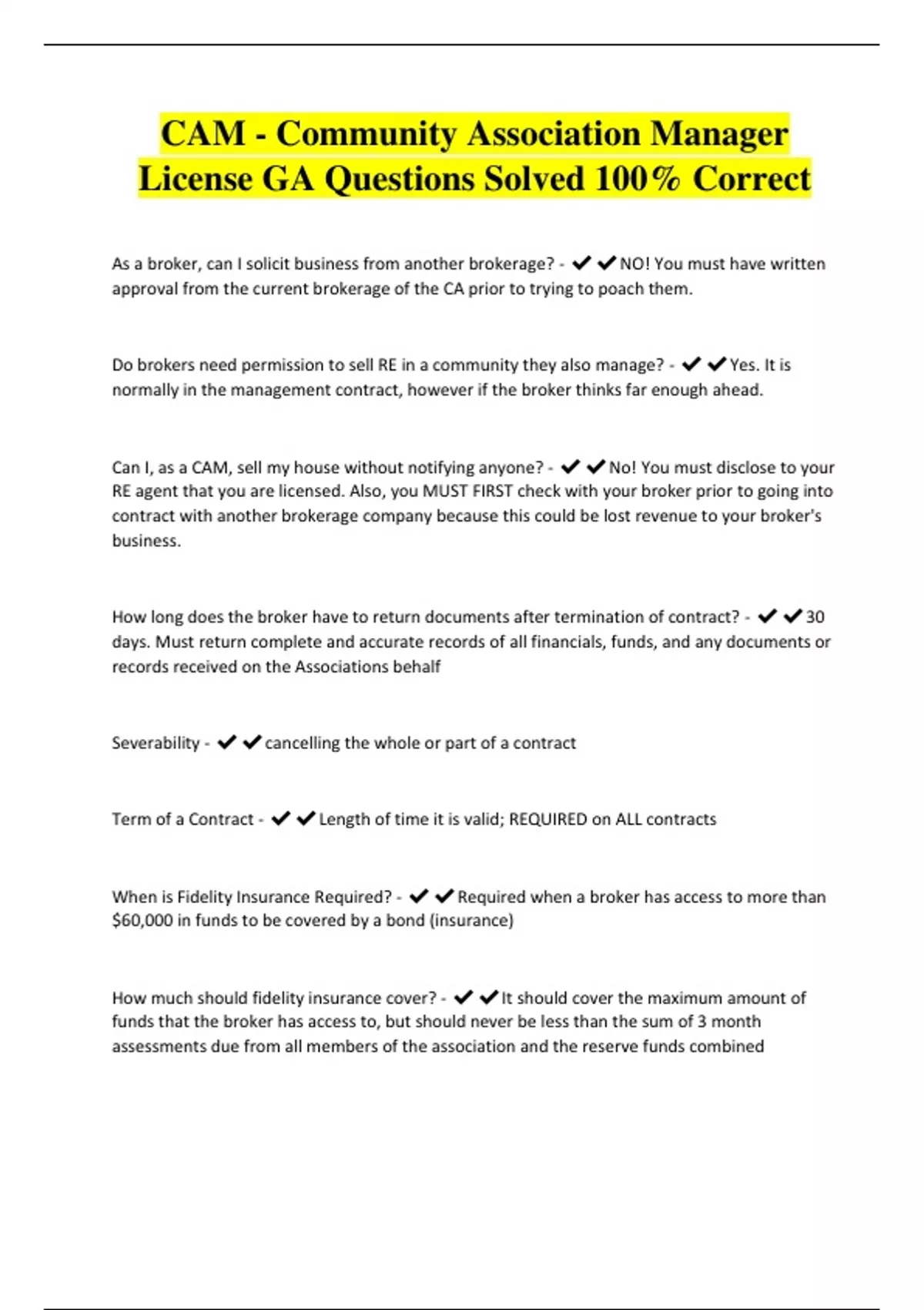 CAM - Community Association Manager License GA Questions Solved 100% Correct