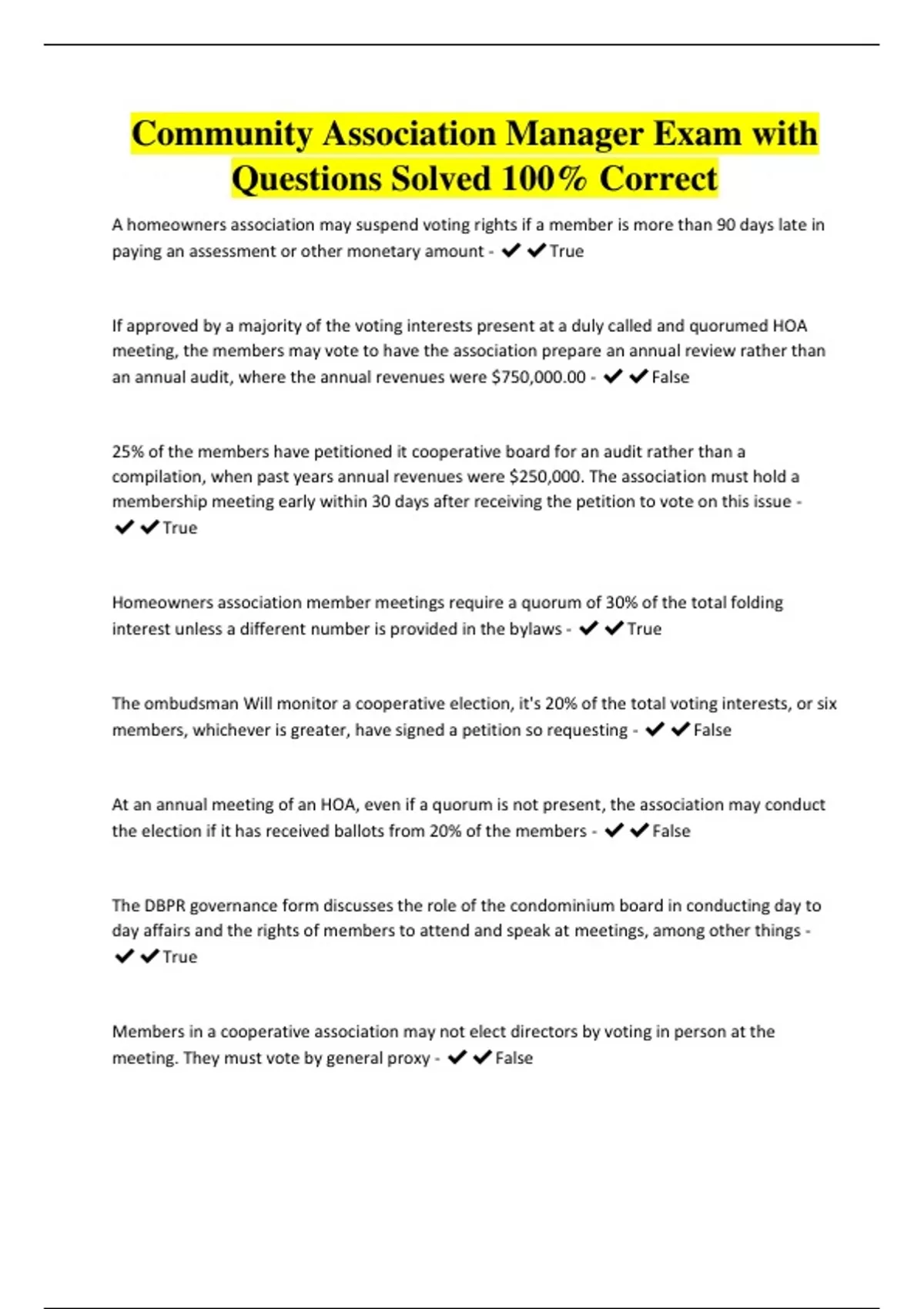 Community Association Manager Exam with