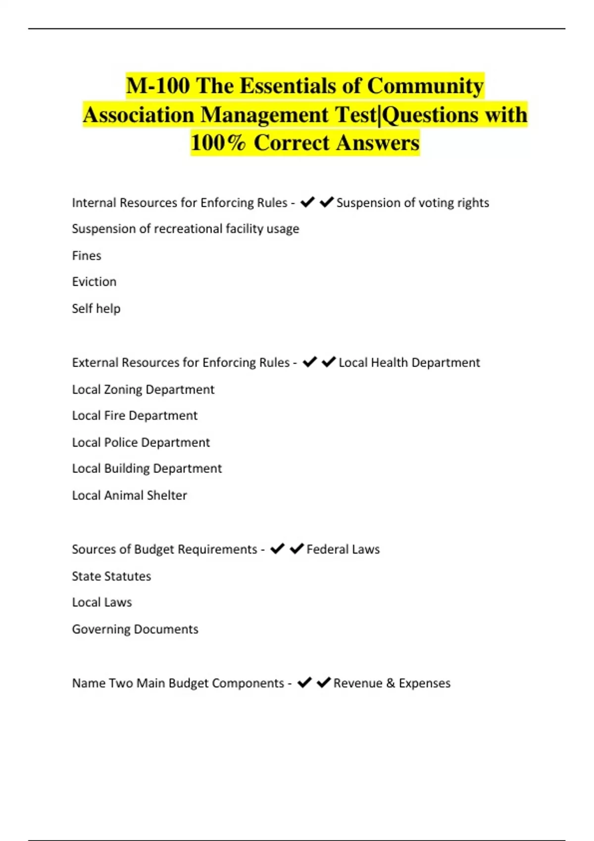 M-100 The Essentials of Community Association Management Test|Questions with 100% Correct Answers